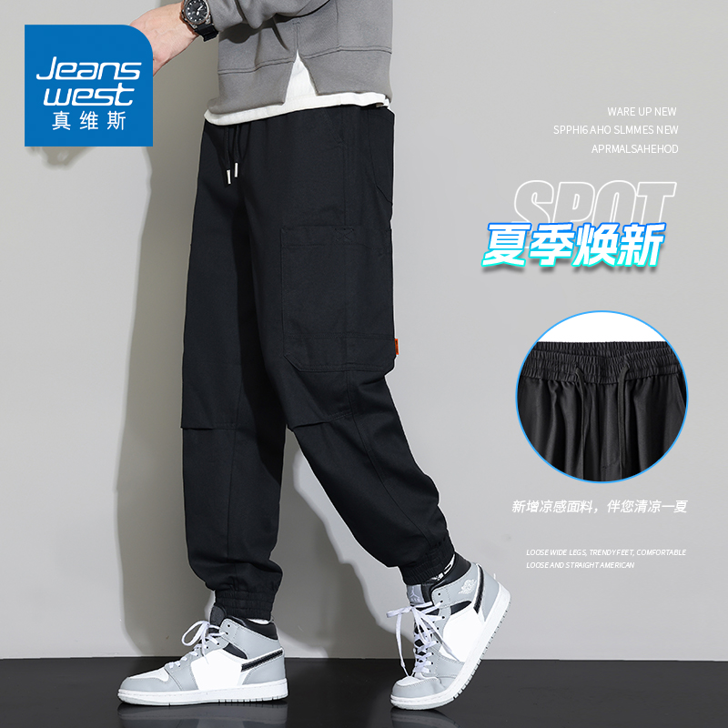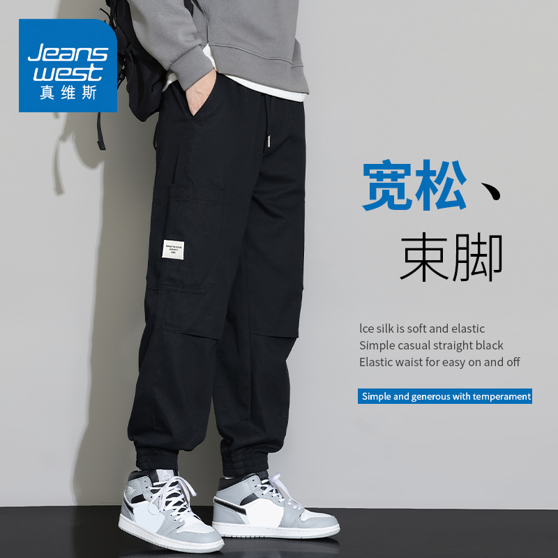 KZH真维斯加绒休闲裤男士秋冬新款宽松束脚裤黑色潮牌运动工装裤