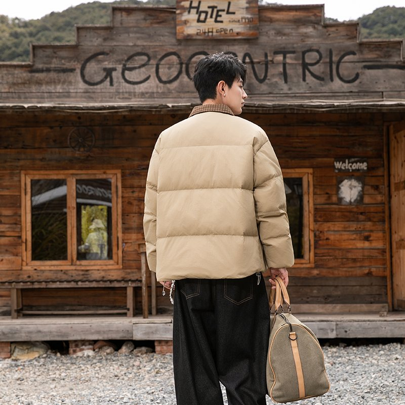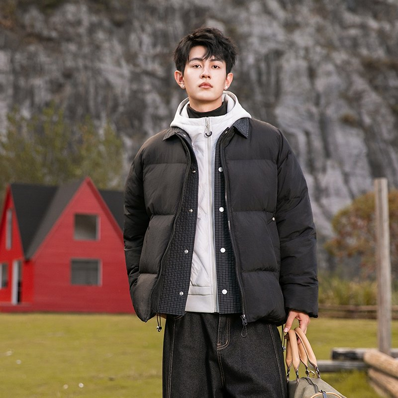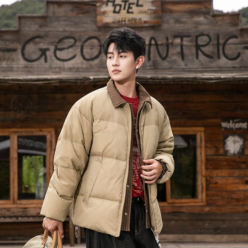 情侣羽绒服男款冬季假两件翻领白鸭绒工装外套男士冬装防寒服以純