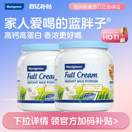 【百亿补贴】美可卓牛奶粉成人高钙进口蓝胖子全脂脱脂1kg*2罐
