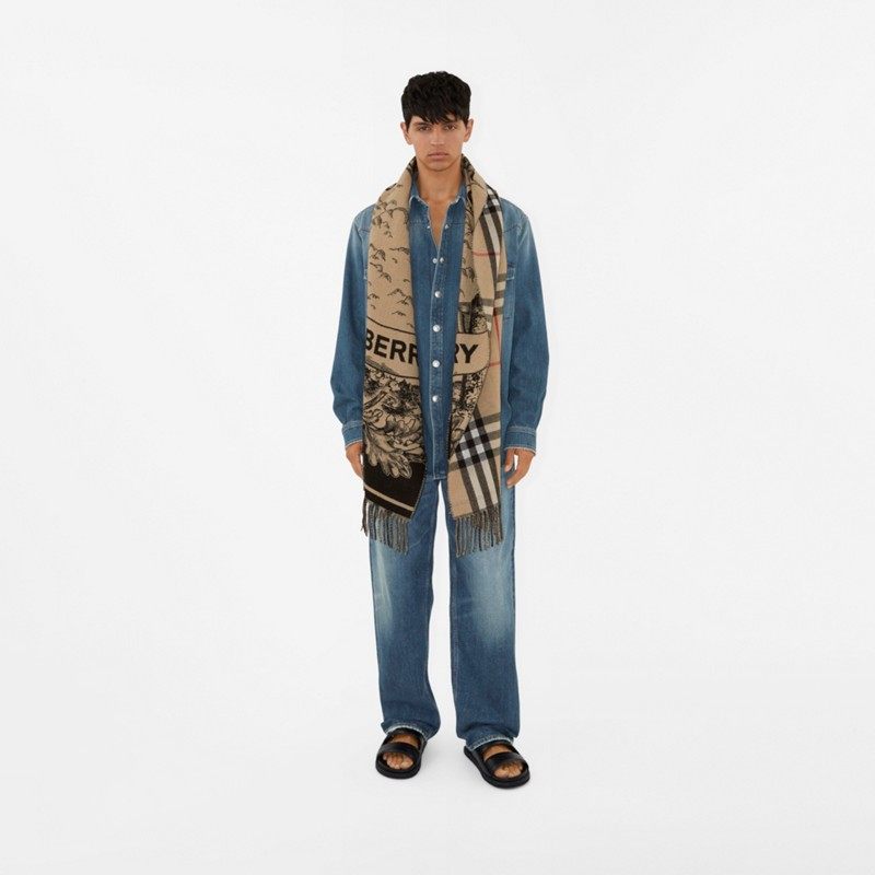 【24期免息】BURBERRY 双面马术骑士徽标羊绒围巾80737681