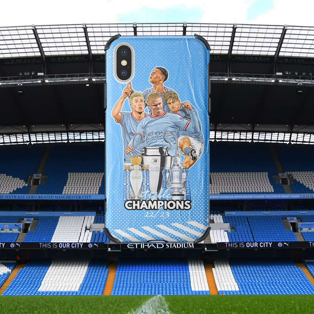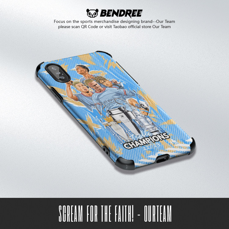 曼城冠军插画手机壳球迷礼物