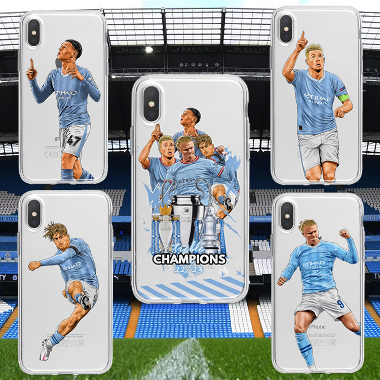 2324曼城原创插画手机壳 哈兰德 德布劳内 福登 格拉利什周边礼物