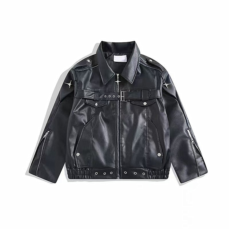 高街美式解构皮衣外套男款春秋季宽松潮牌痞帅机车服短款翻领夹克