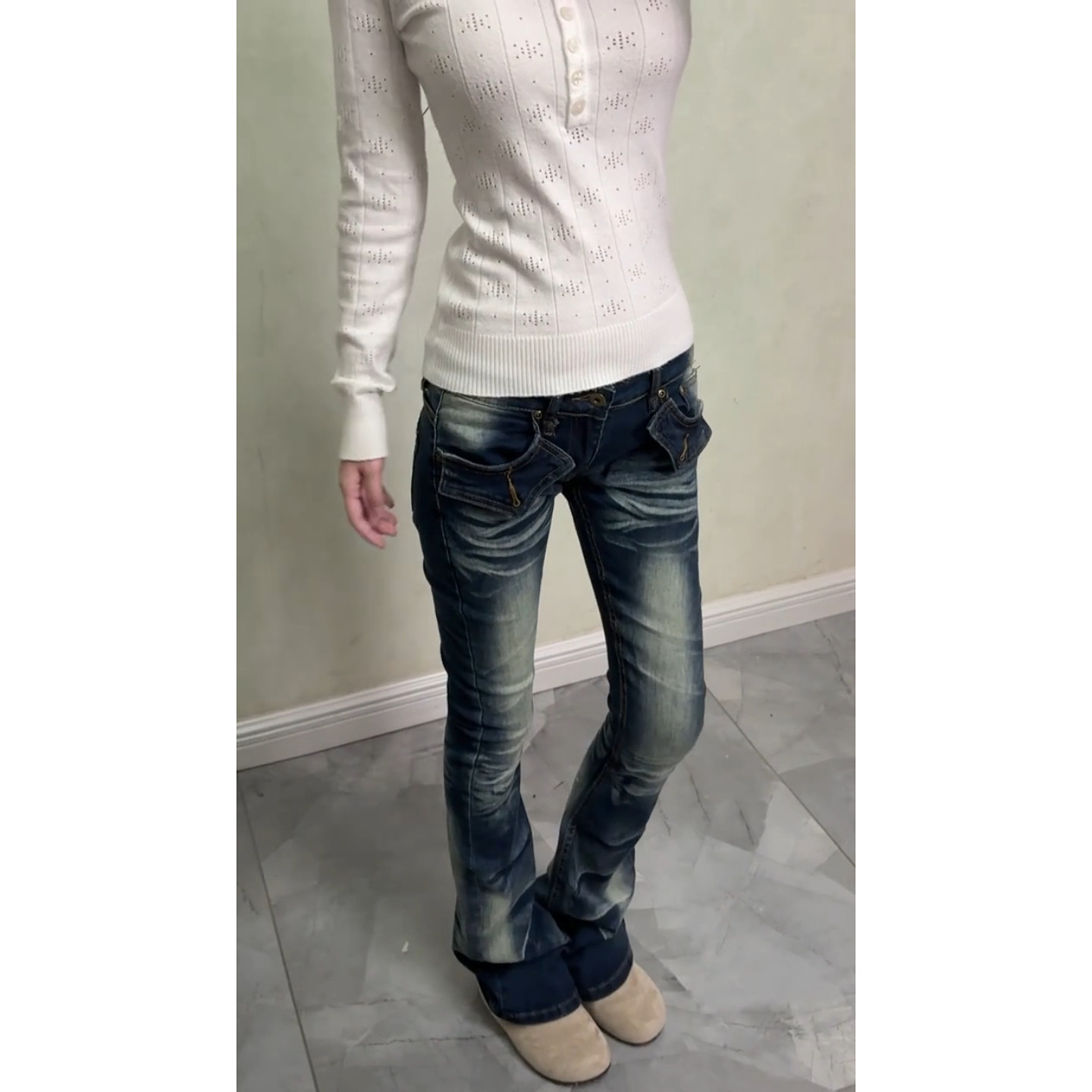 美式vibe辣妹复古水洗牛仔裤