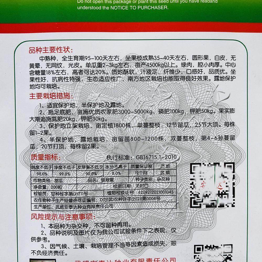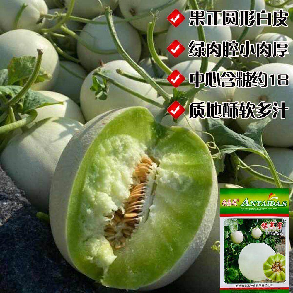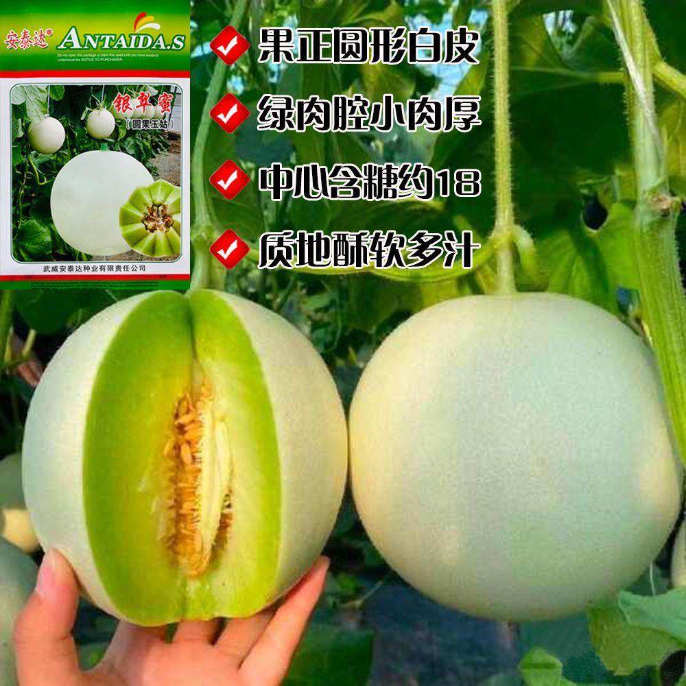 银翠蜜甜瓜种子圆果白皮绿肉玉姑菇甜瓜种籽酥软多汁抗病甜瓜种籽