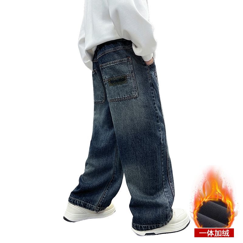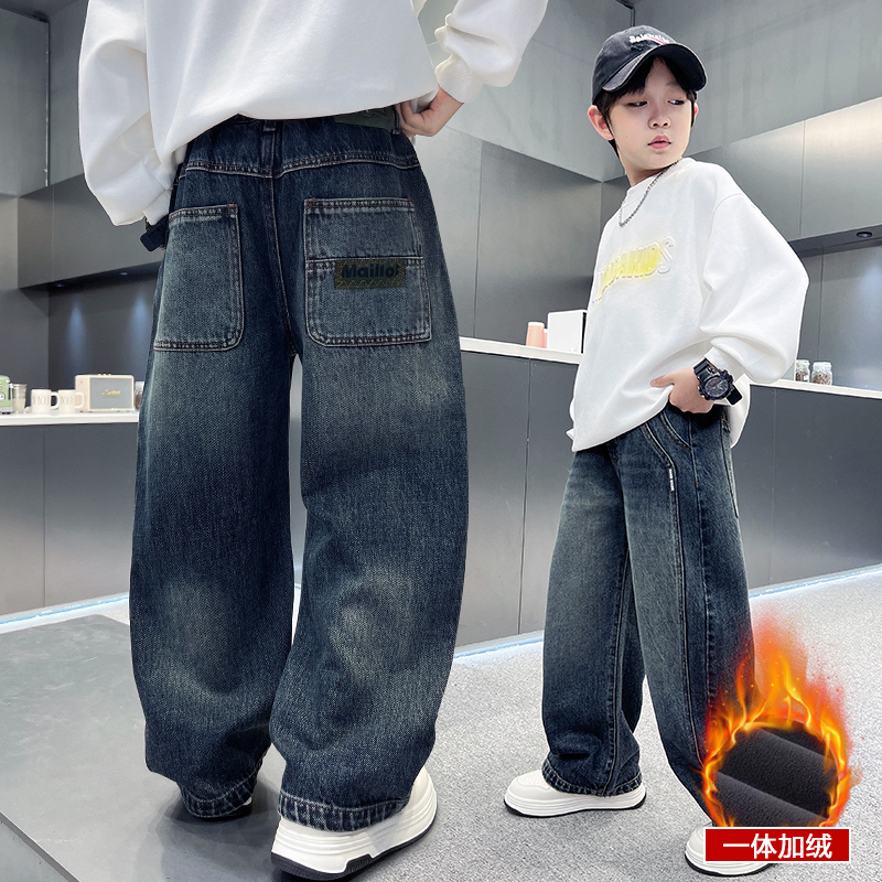 男童秋冬款裤子2025新款中大童加绒裤子帅气儿童冬季牛仔长裤保暖