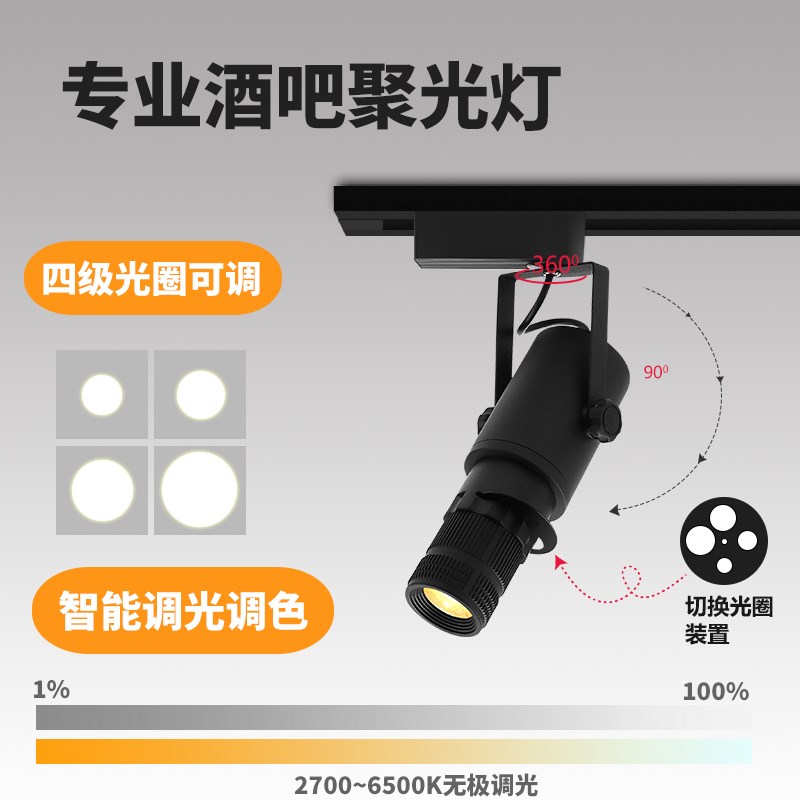 明装聚光灯led射灯酒吧舞v台餐桌氛围灯变焦吸顶轨道 智能无极调