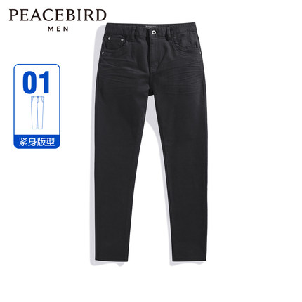 【亏本清仓】太平鸟男装2025春秋款黑色牛仔长裤小脚紧身修身