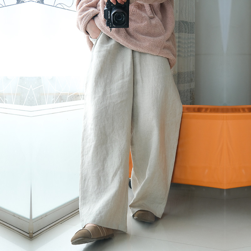 2025正品雨露麻显瘦宽松休闲裤阔腿白色高腰夏季百搭系带垂感裤子