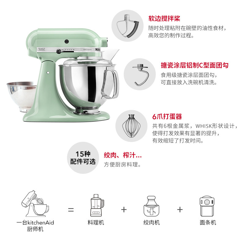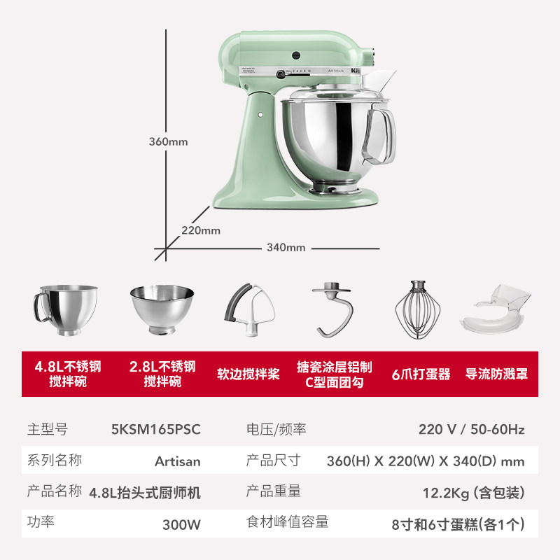 KitchenAid凯膳怡进口厨师机5QT双碗家用小型和面机揉面搅拌机165