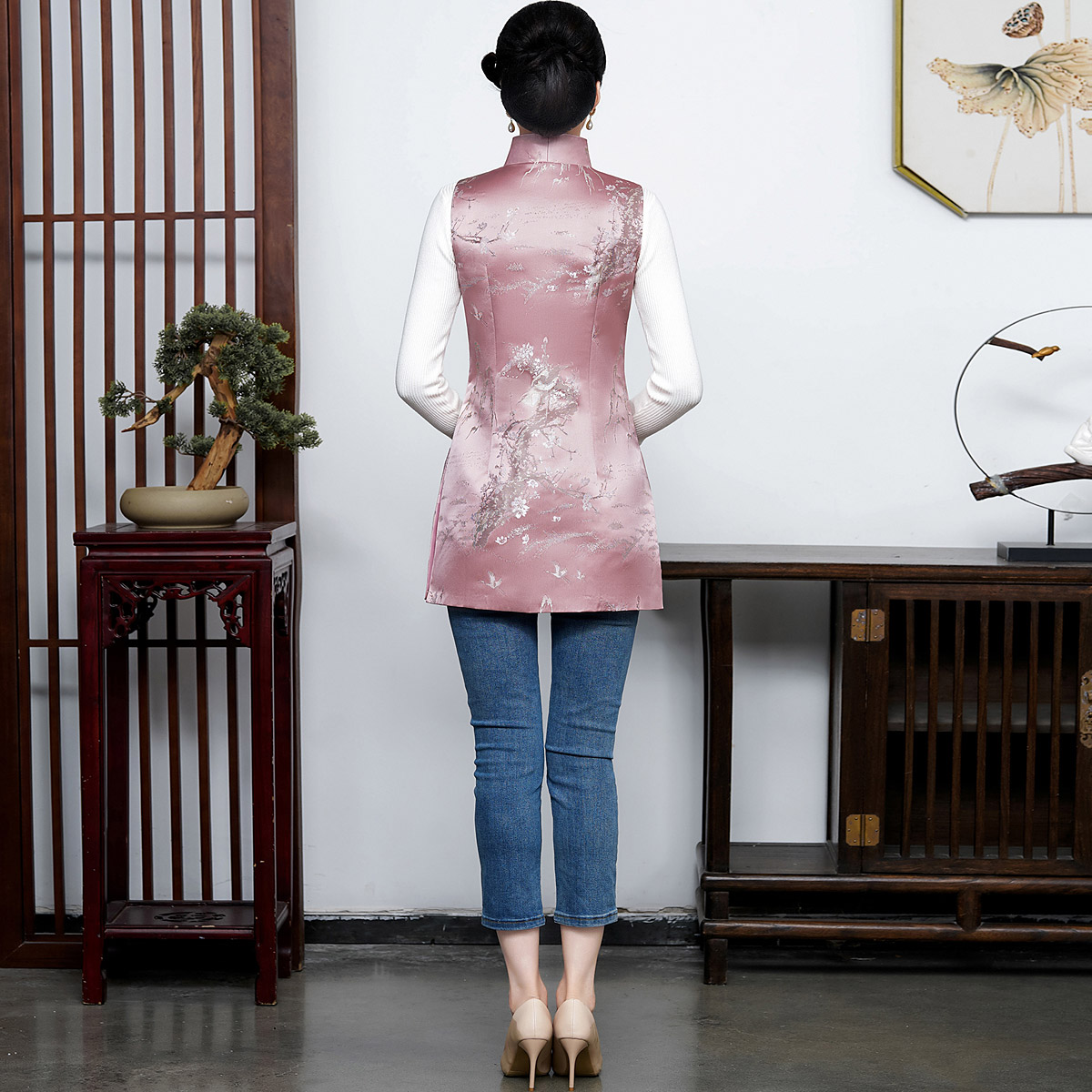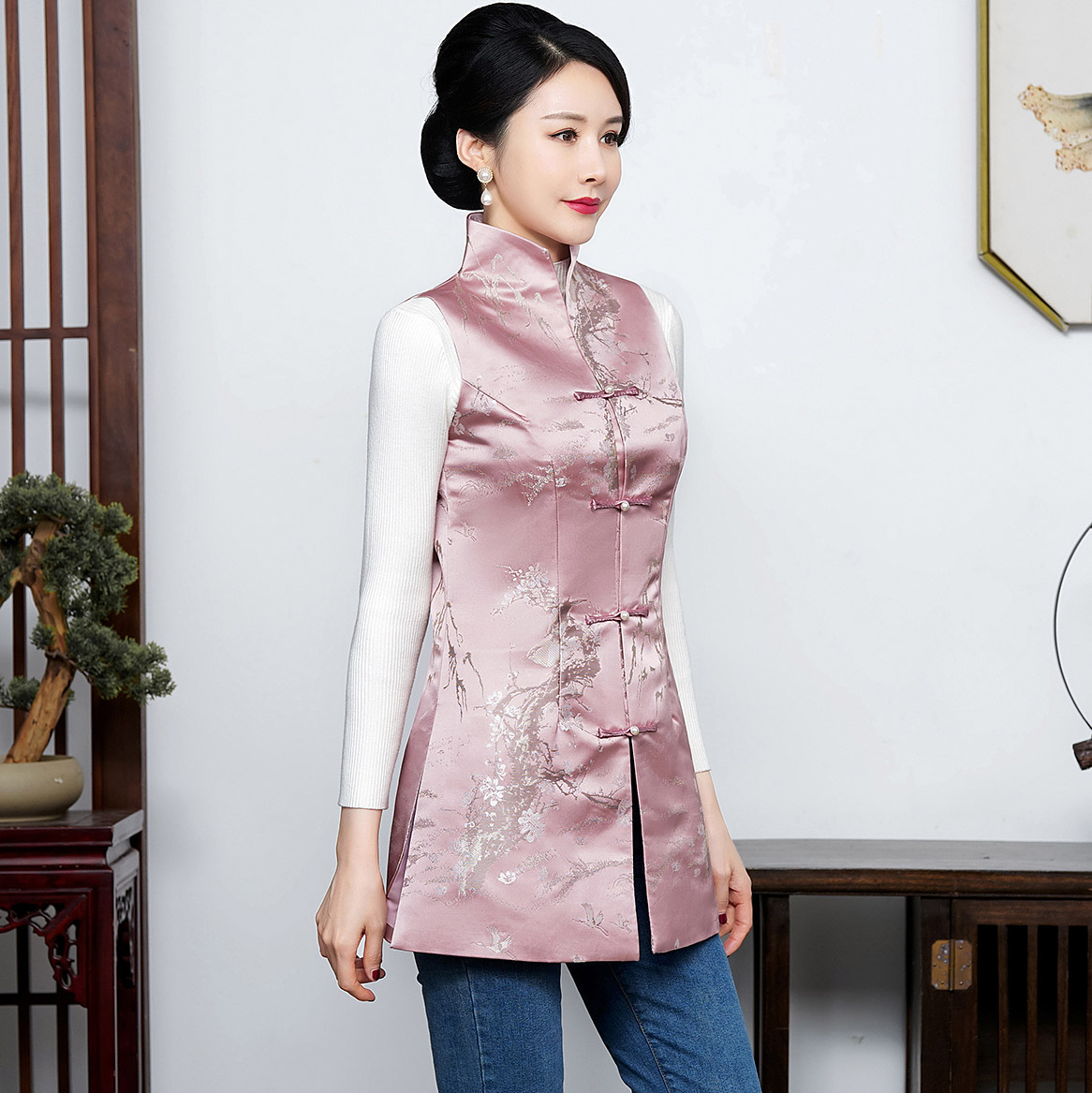 粉色马夹年轻款旗袍上衣唐装女中式马甲背心春秋装新款中国风女装