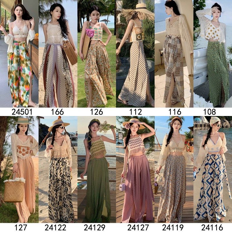 阔腿裤女夏季薄新款碎花高腰宽松垂感显瘦泰国直筒长裙裤两件套装