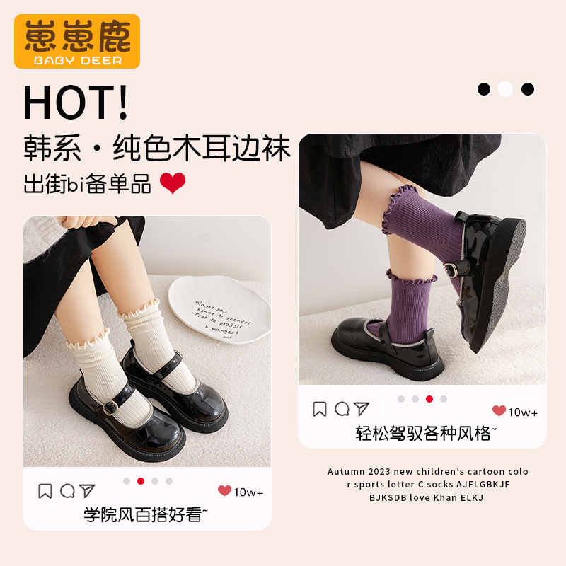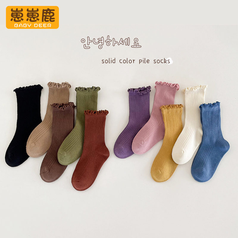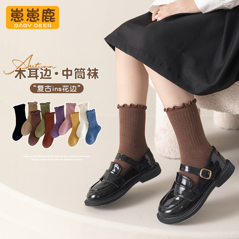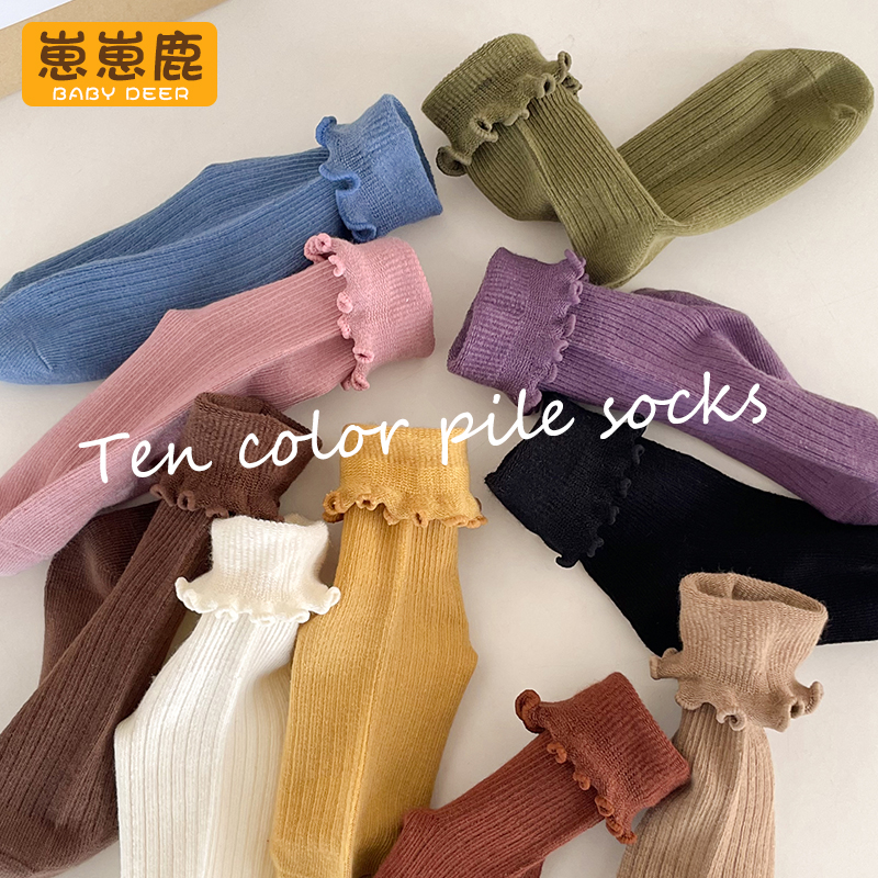 女童袜子春秋纯棉儿童木耳边堆堆袜中筒袜秋冬女孩公主花边配皮鞋