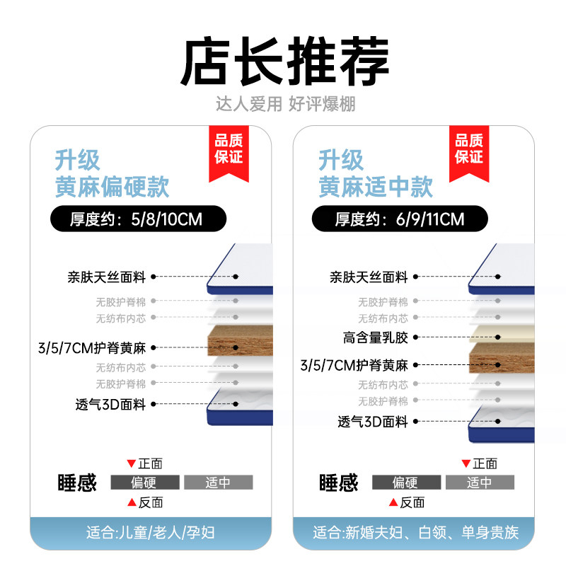 海马亦言学生宿舍儿童黄麻棕垫天然椰棕床垫硬护脊家用棕榈十大
