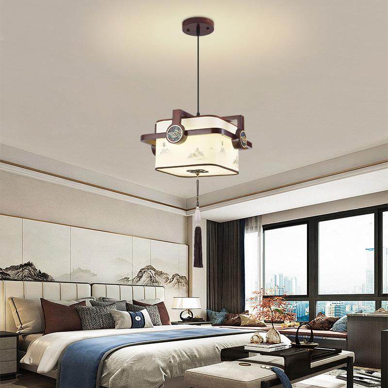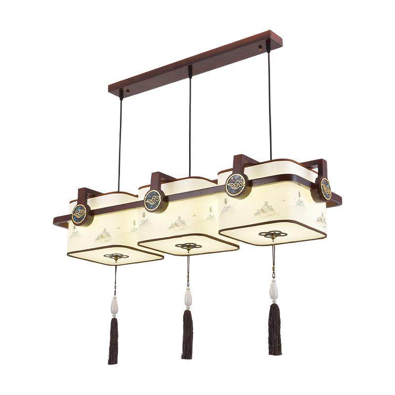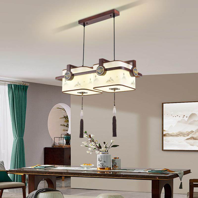 新中式餐厅卧室茶室吧台木艺三头客厅过道吸顶广东中山古镇吊灯