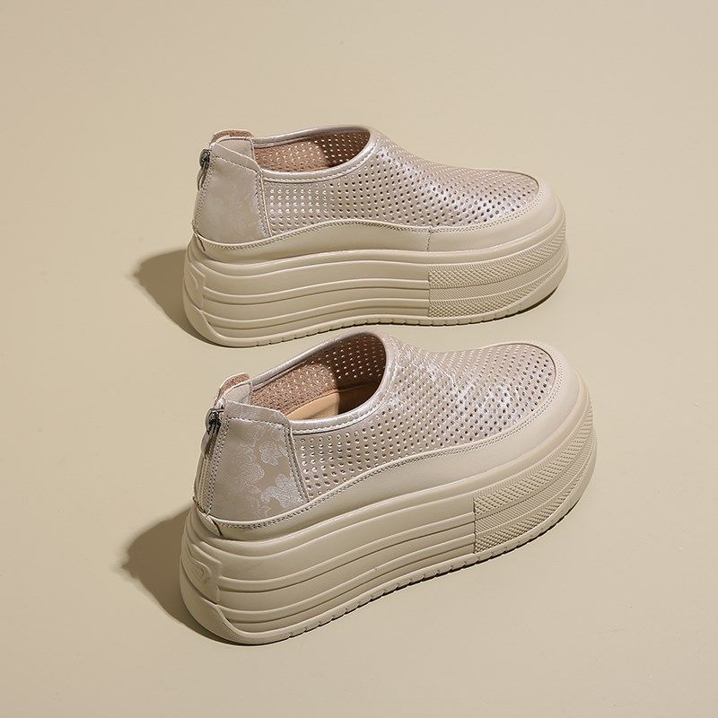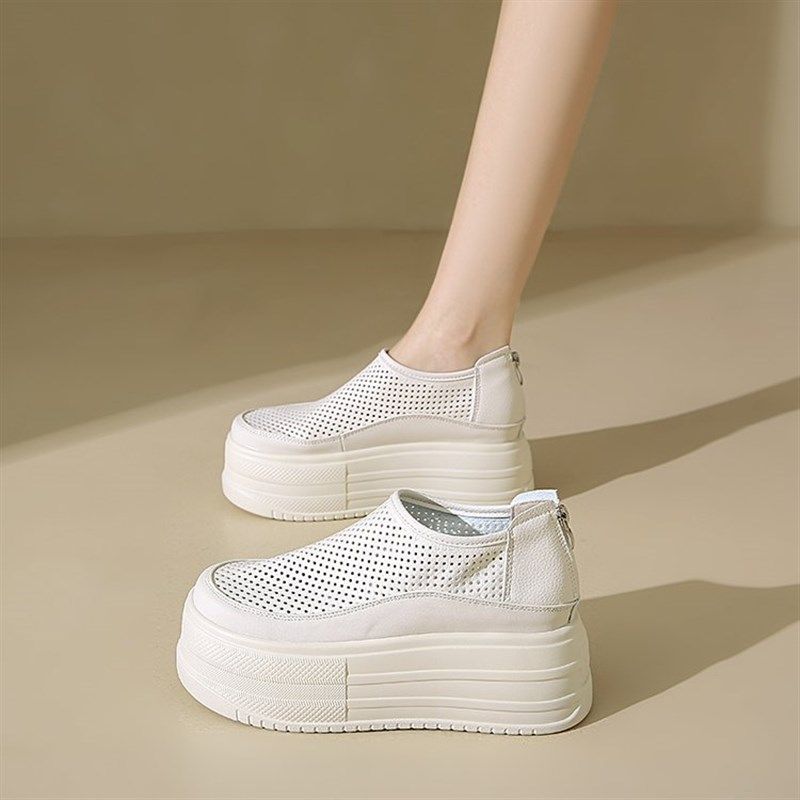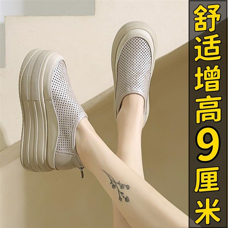 厚底内增高镂空透气松糕鞋女夏季薄款9cmM高跟小个子休闲运动单鞋