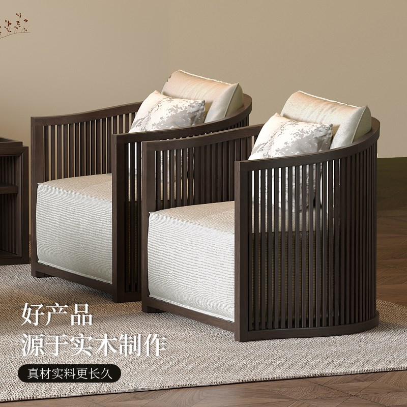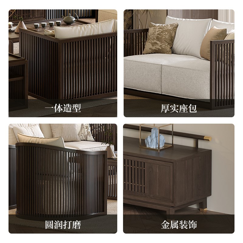 【格栅】新中式实木沙发宋式美学禅意别墅客厅轻奢白蜡木宋代家具