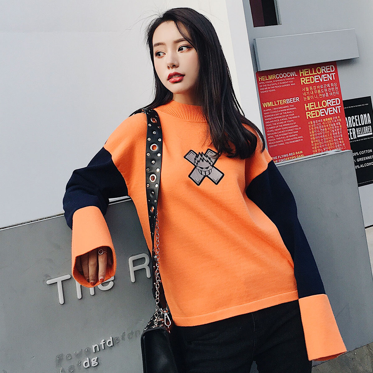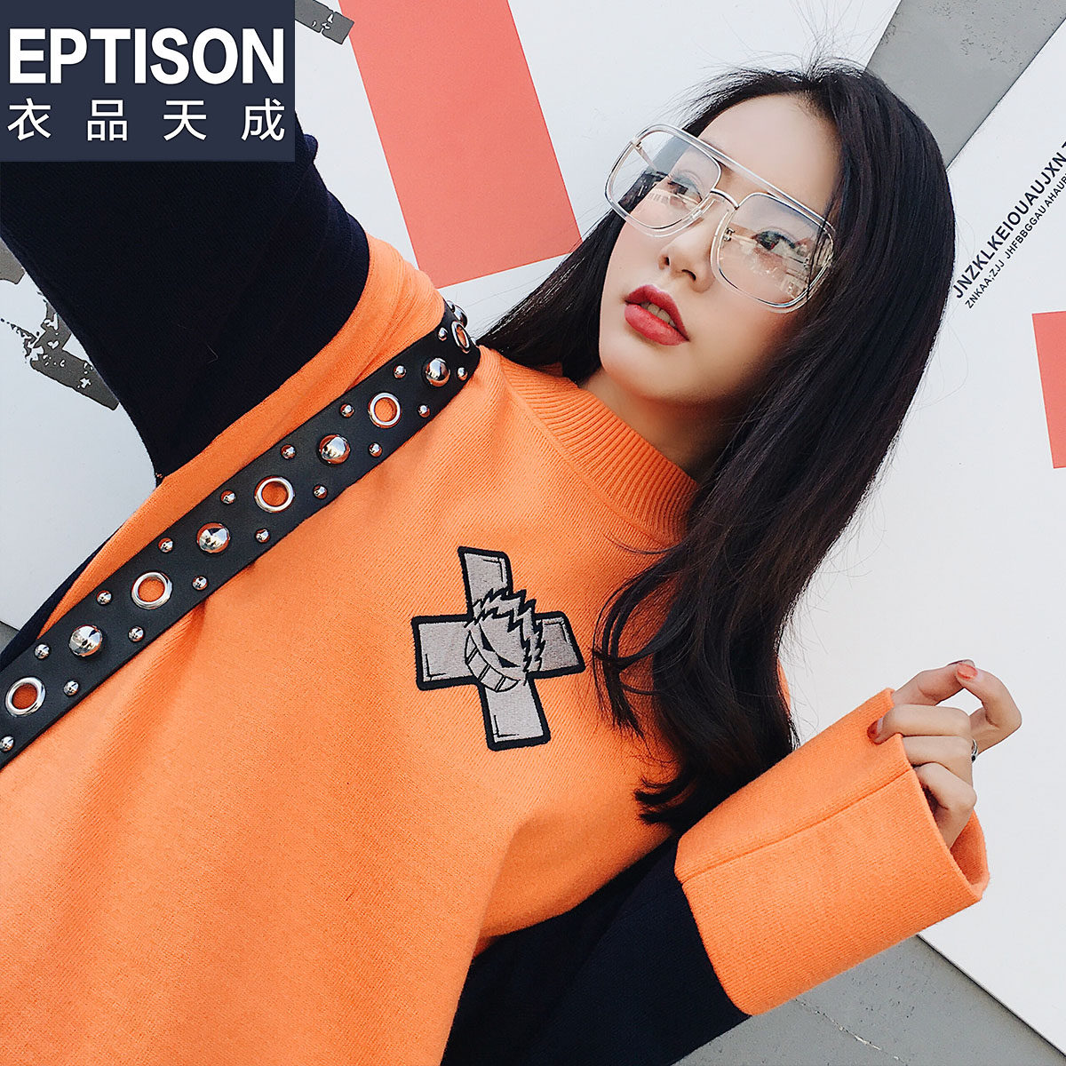 【29.9/件】EPTISON毛衣外套女慵懒风新款刺绣半高领宽松上衣潮