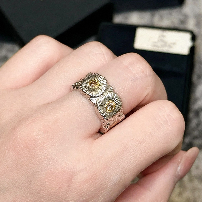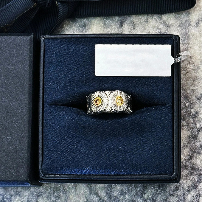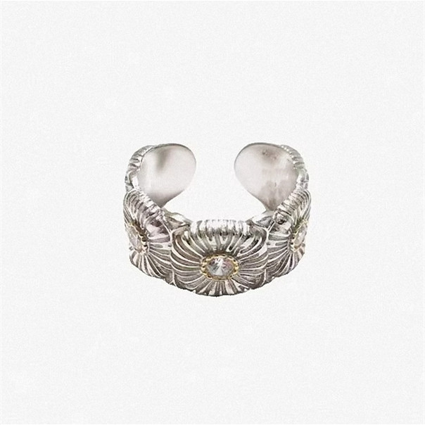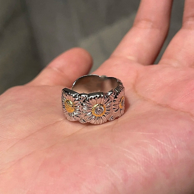 权志龙同款小雏菊戒指 纯银拉丝开口花朵小众设计感指环男女情侣