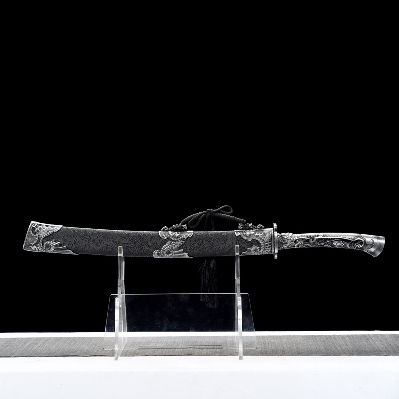 龙泉刀剑手工一体锻打牛尾刀高锰钢烤蓝镇宅冷兵器影视道具未开刃