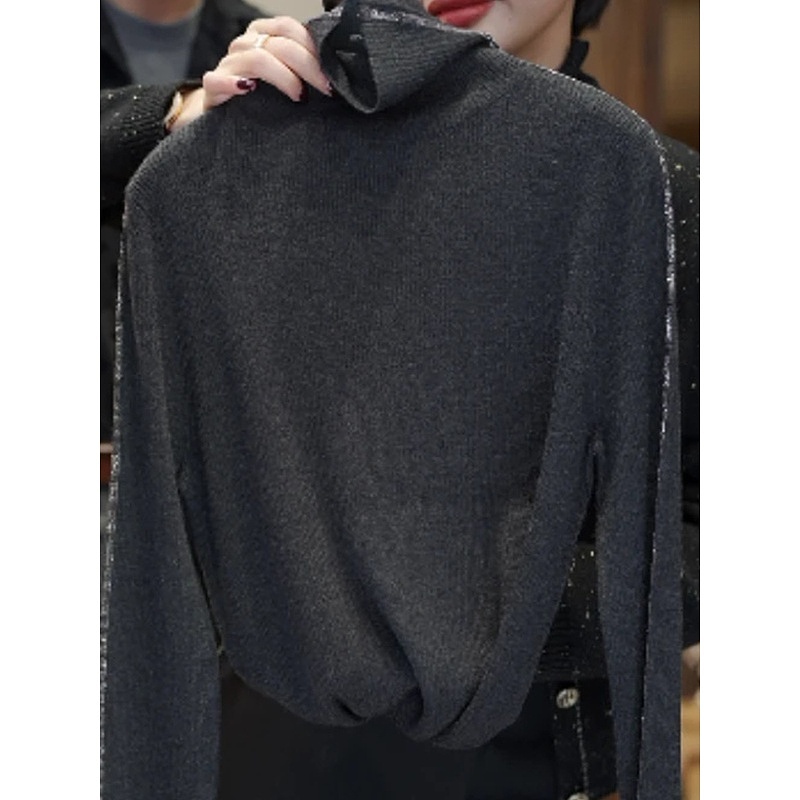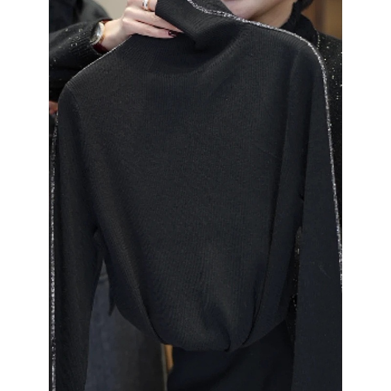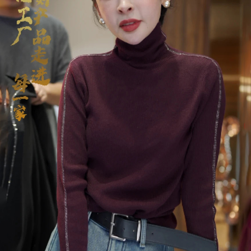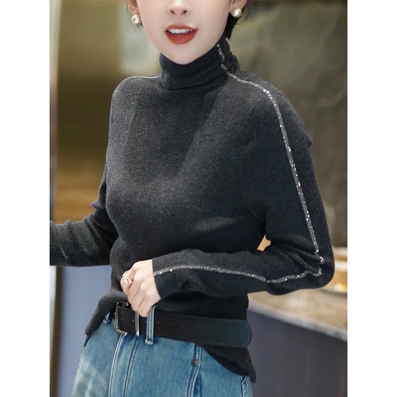 欧洲站设计感镶钻修身显瘦针织上衣女2024秋冬新款时髦高领打底衫