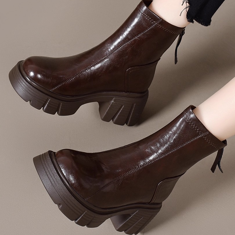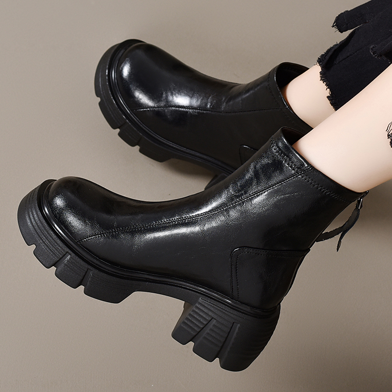 品牌高跟马丁靴厚底切尔西女靴2025秋冬季新款真皮增高英伦风短靴