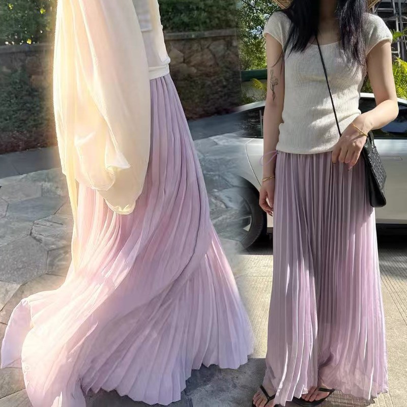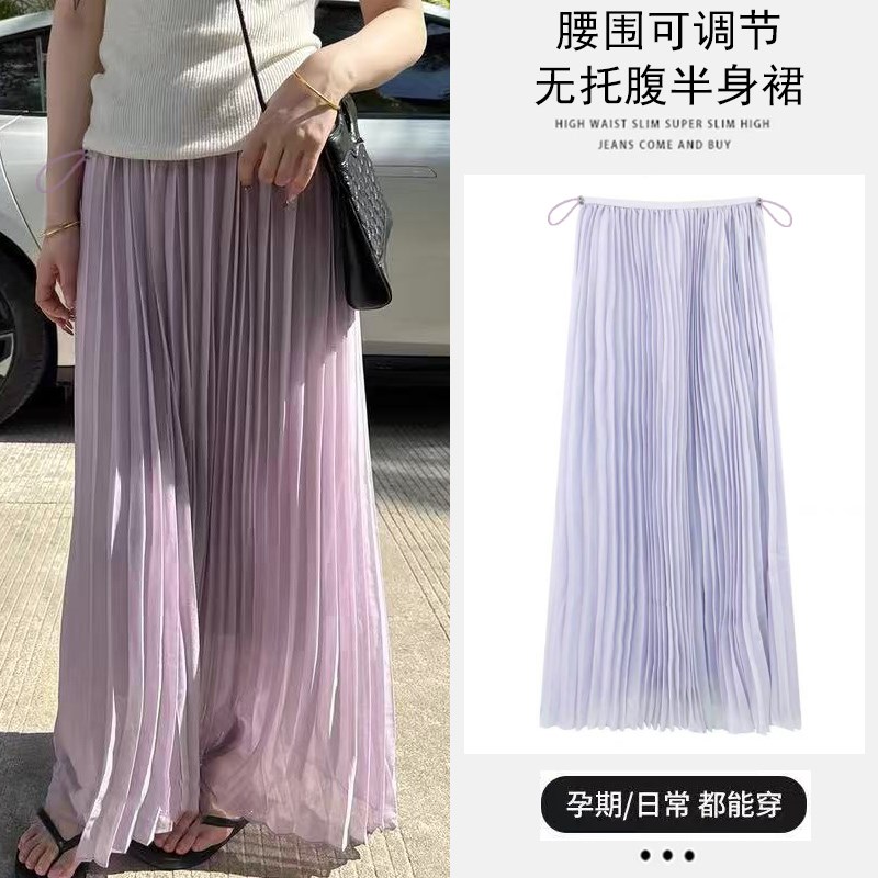 紫色百褶雪纺孕妇半身裙春夏季薄款宽松甜美仙P逸中长款a字蓬蓬裙