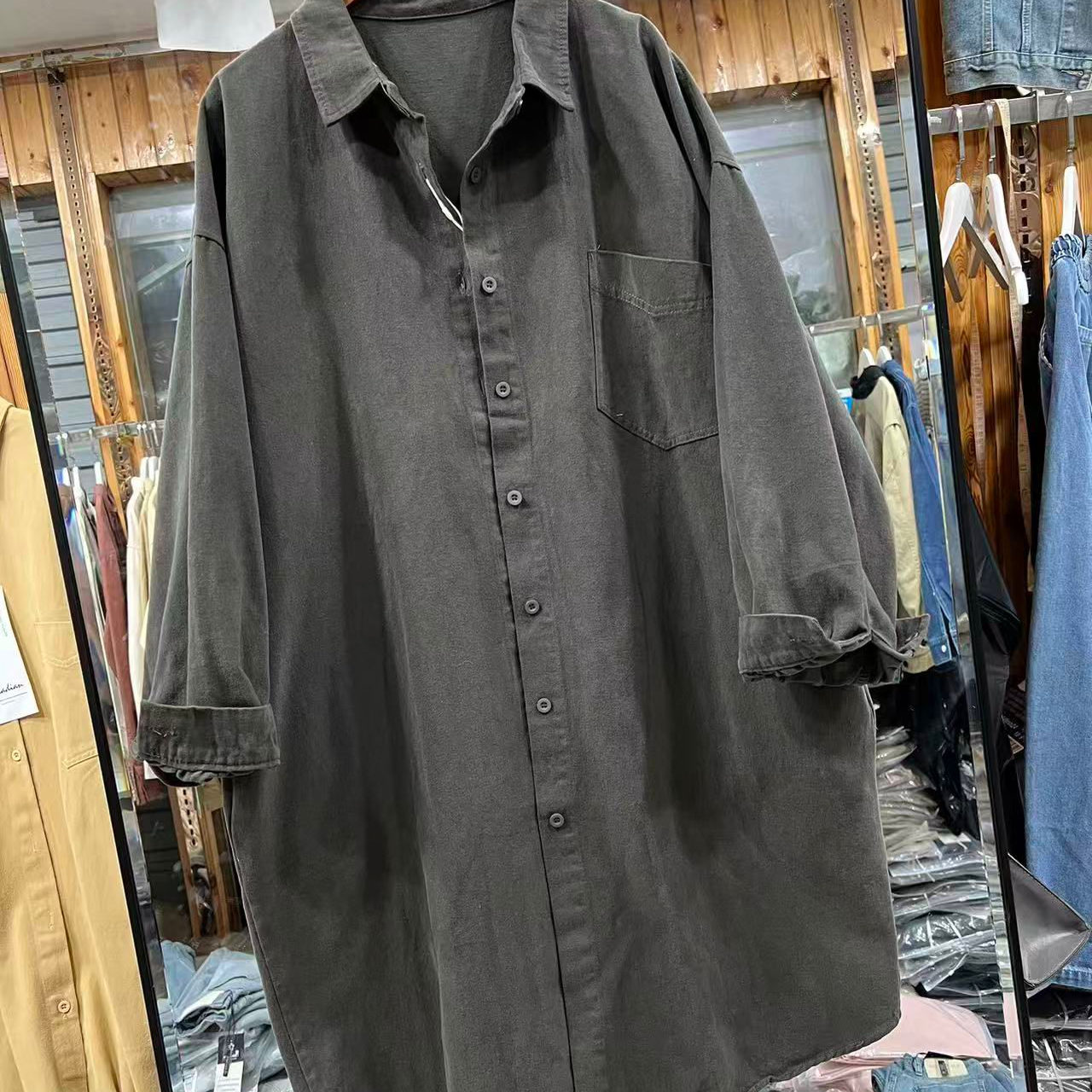 中长款衬衫外套翻领宽松