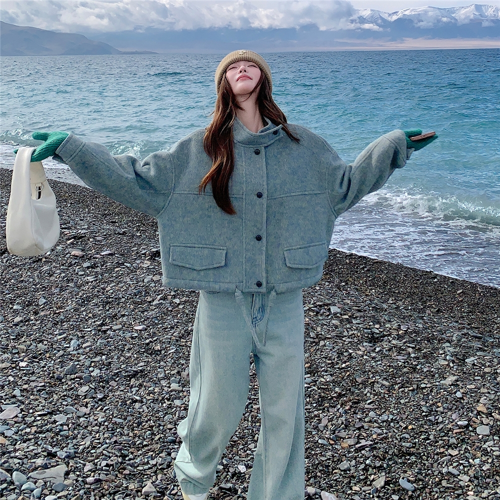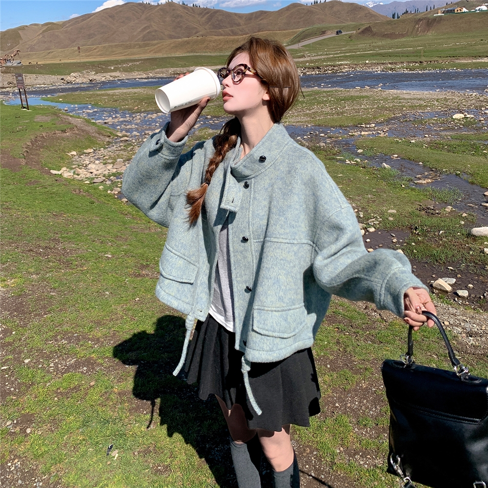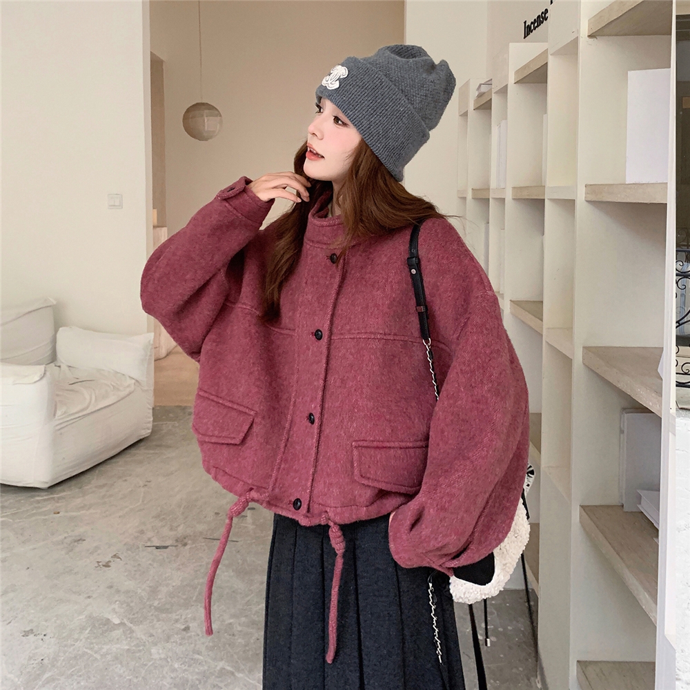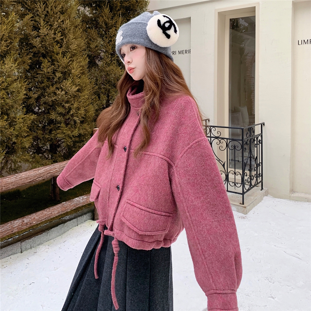红色短款双面羊毛大衣女秋冬2025新款小个子休闲百搭立领毛呢外套