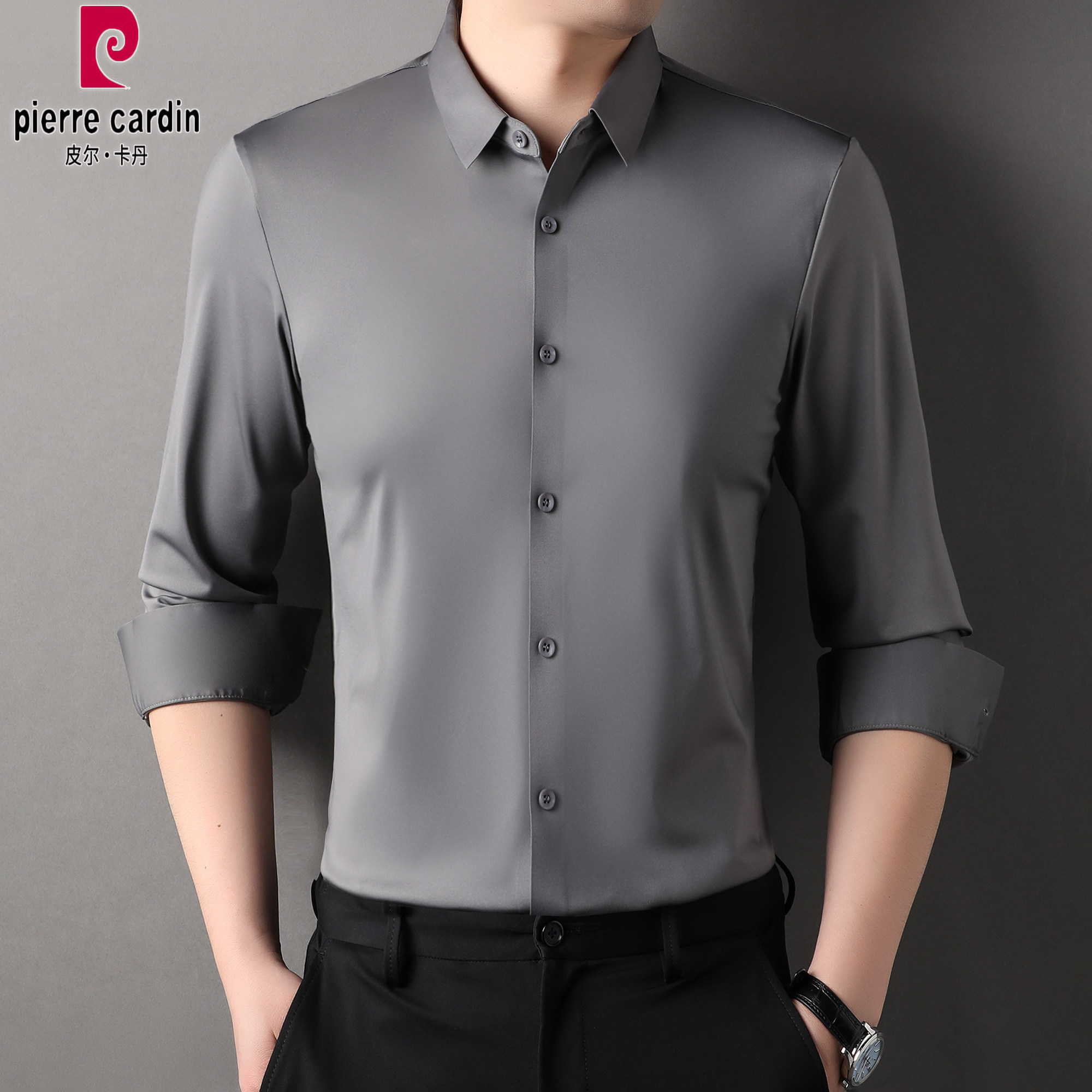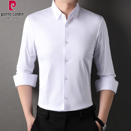 皮尔卡丹免烫无痕衬衫男长袖春秋季新款工装商务休闲免烫纯色衬衣