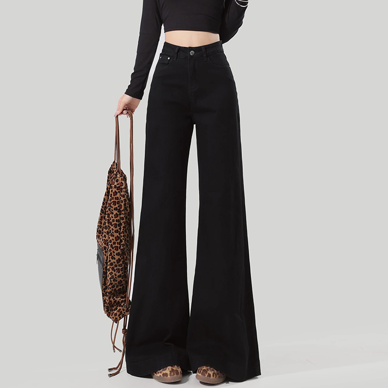 300斤大码黑色休闲微喇牛仔裤女胖mm不贴腿显瘦直筒弹力喇叭裤子