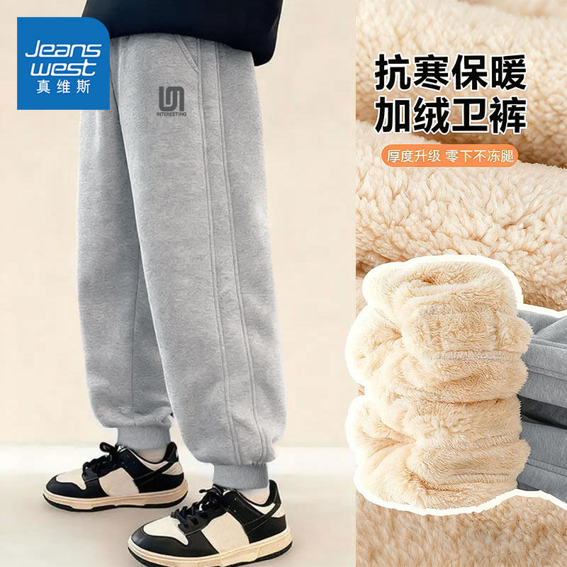 真维斯童装男童加绒裤子男大童羊羔绒加厚保暖卫裤儿童秋冬款长裤