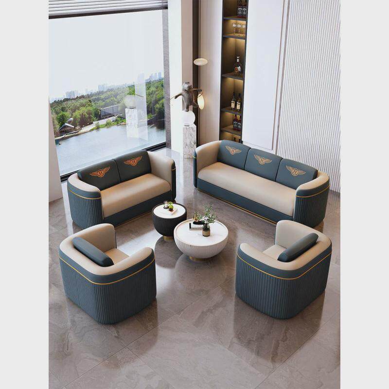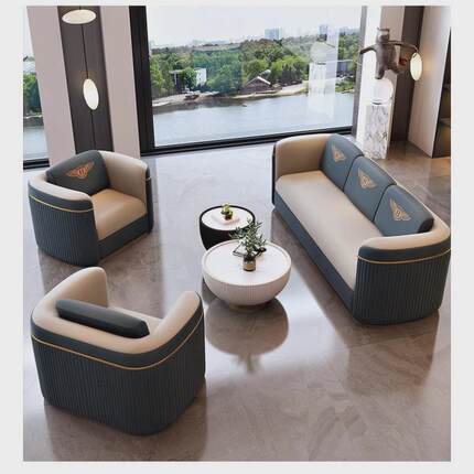 现代简约单人沙发椅商务会客三人沙发酒店足浴售楼部接待皮艺沙发