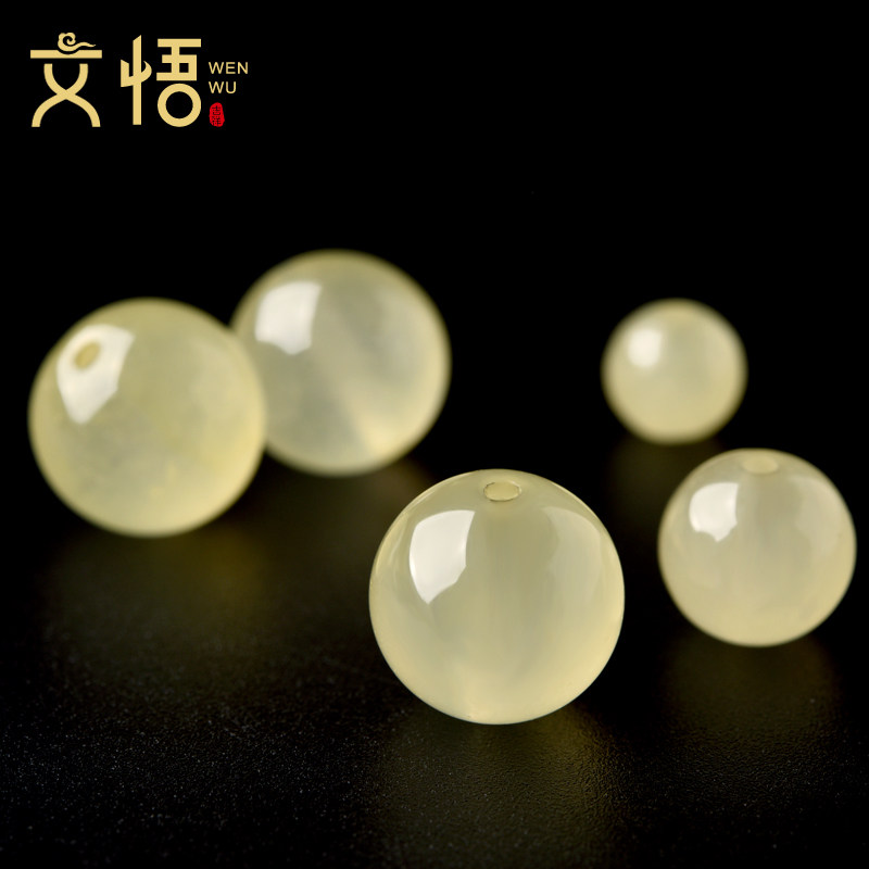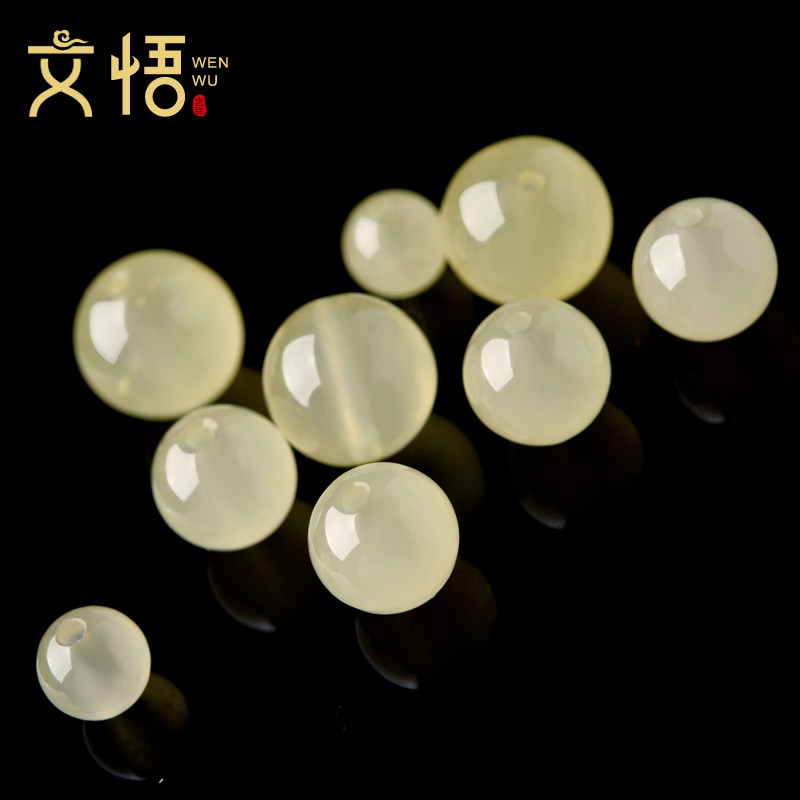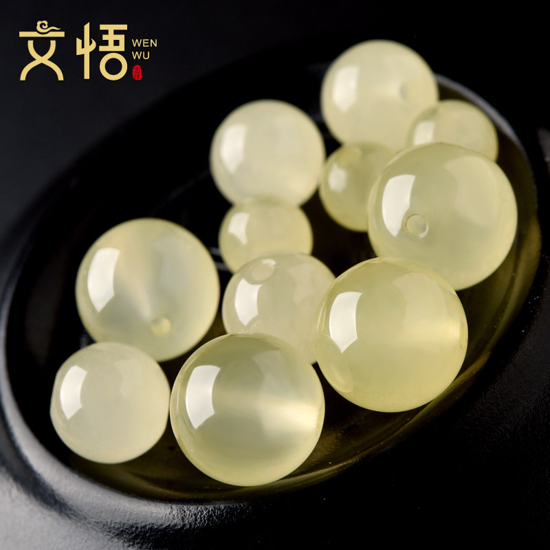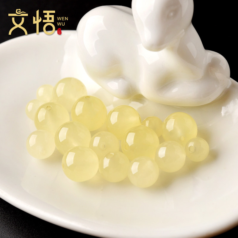 嫩黄玉髓手链散珠浅黄玉米黄玉DIY串珠手串配珠项链珠子水晶配件
