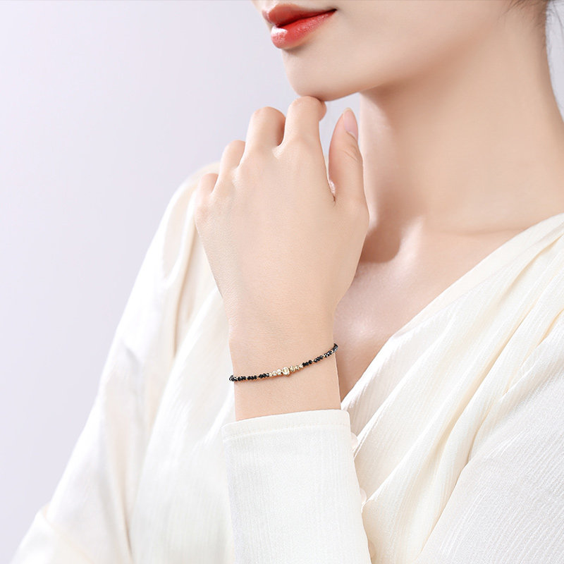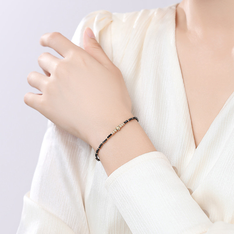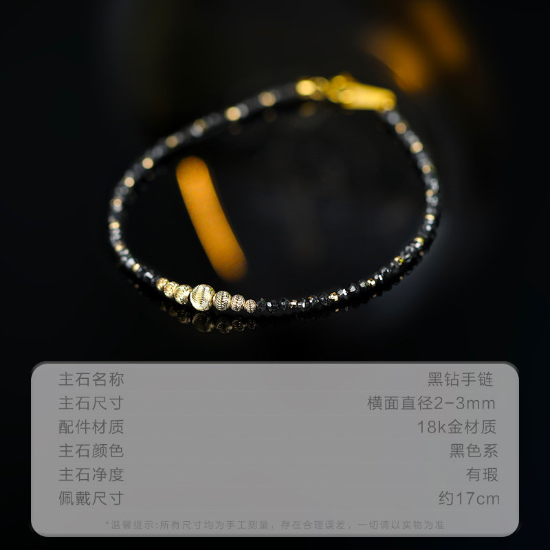 可卿珠宝 黑金 钻石手链女18k金黑钻串珠手饰手串彩宝正品礼物