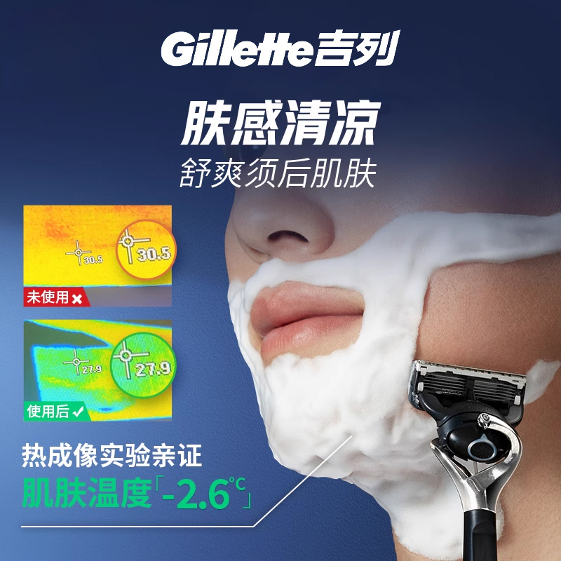 吉列绿茶剃须泡沫男士刮胡子泡沫软化胡须剃须膏手动剃须刀须泡