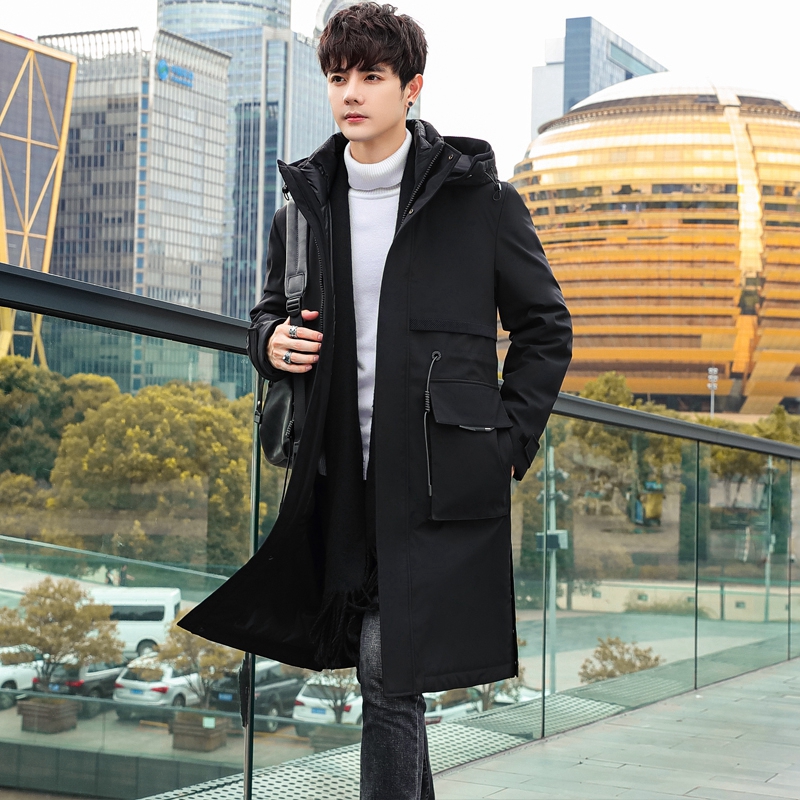 男士羽绒服新款加长款派克活里活面潮流帅气青年长过膝可拆卸内胆