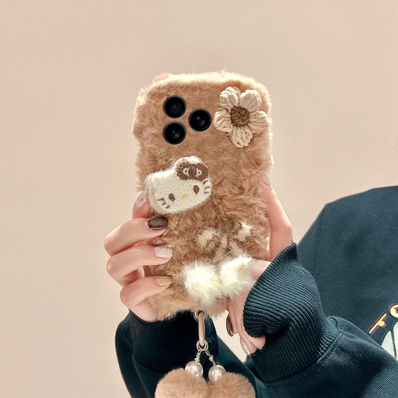 花朵凯蒂猫适用苹果17air手机壳iphone16promax卡通15plus挂链14秋冬季13mini迷你12毛绒11毛茸茸xr8/7xsmax6