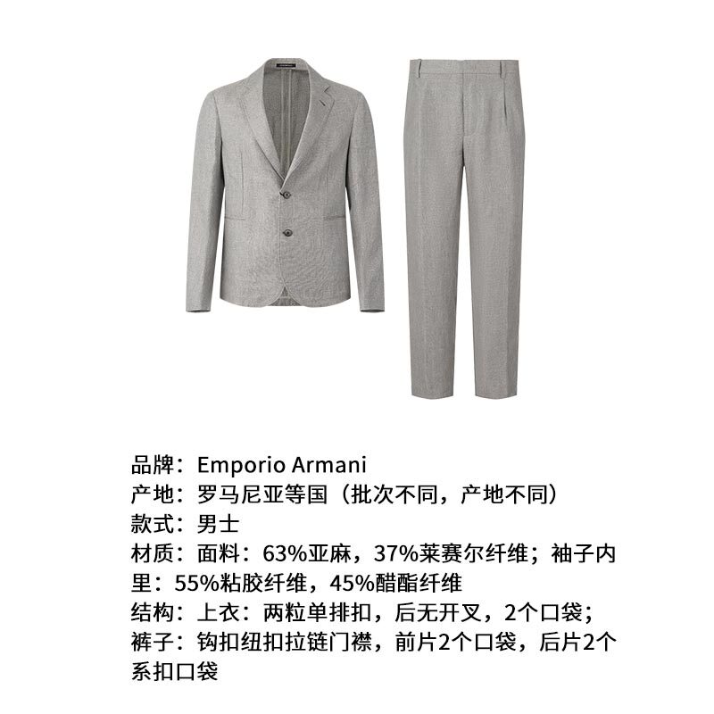 EA阿玛尼男士休闲西装西裤长裤西服套装 EM000481 TE12887