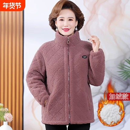 妈妈秋冬装颗粒绒外套加厚短款加绒上衣女新款中老年时尚棉衣棉服