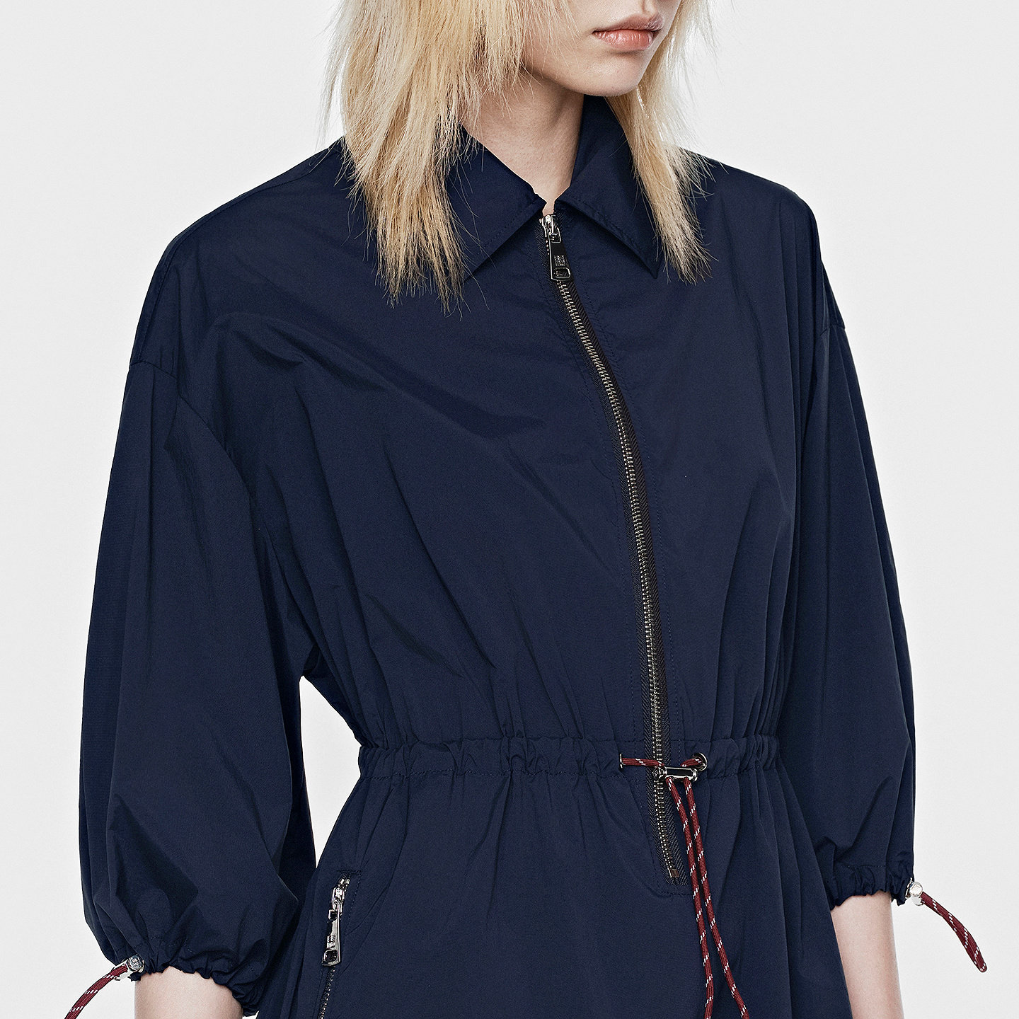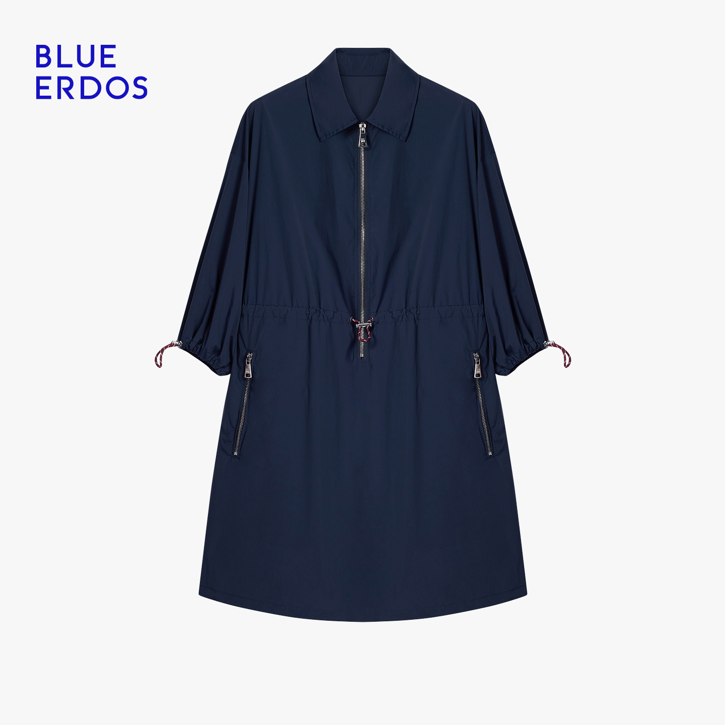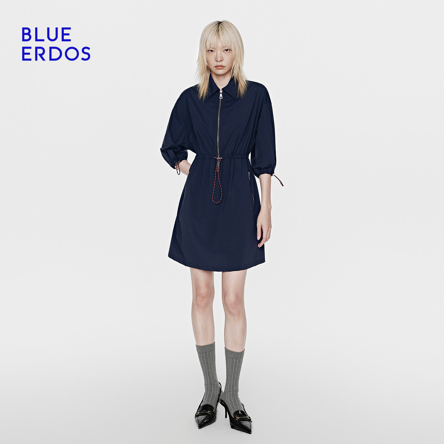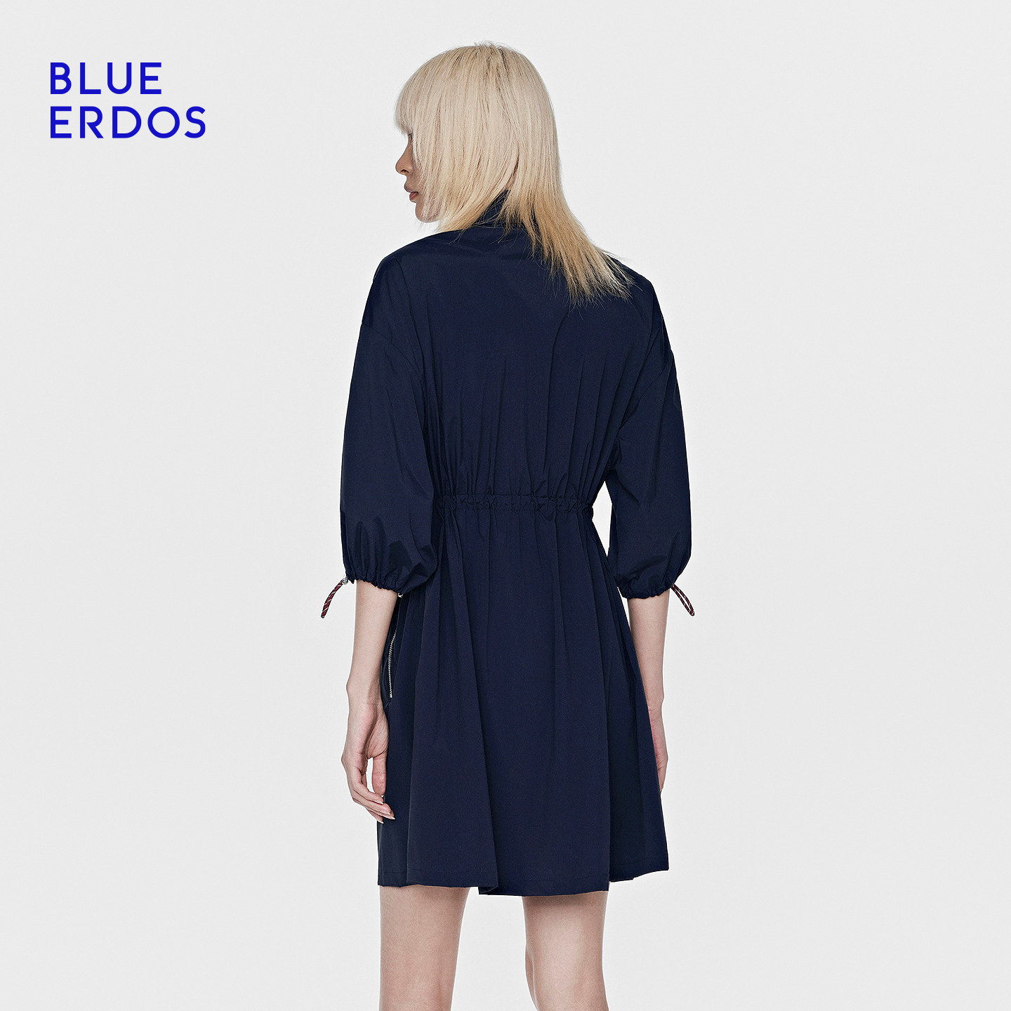 BLUE ERDOS26早春新品休闲海军蓝Polo领抽绳收腰工装A字连衣裙女