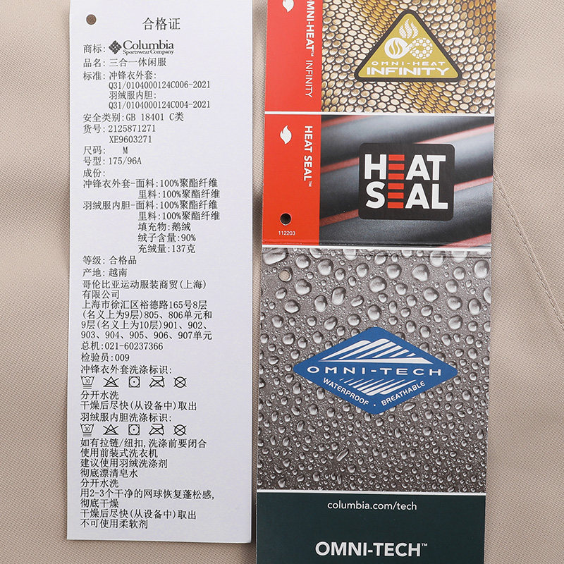 哥伦比亚金点热能三合一冲锋衣