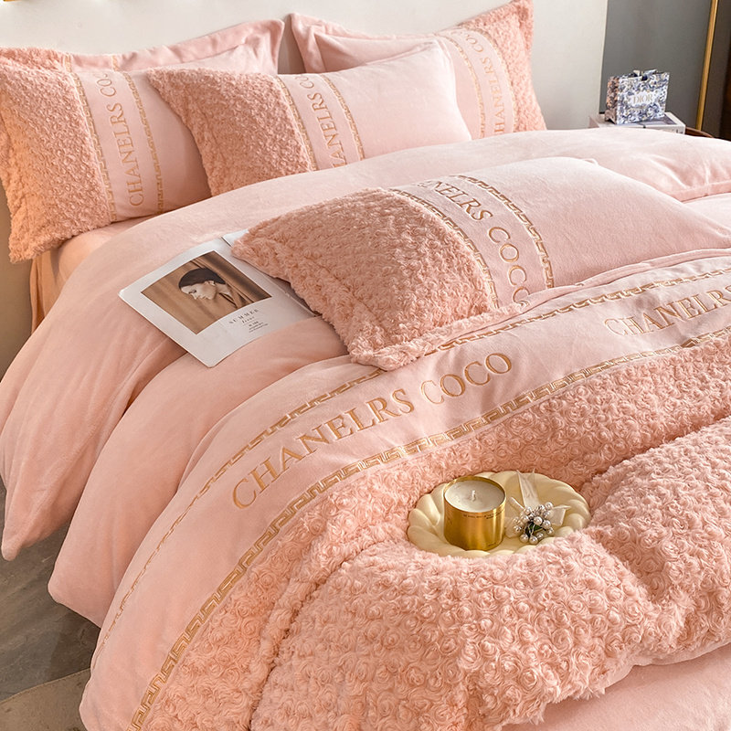2026冬季轻奢风牛奶绒四件套珊瑚绒兔毛加厚被套床单床笠床上用品