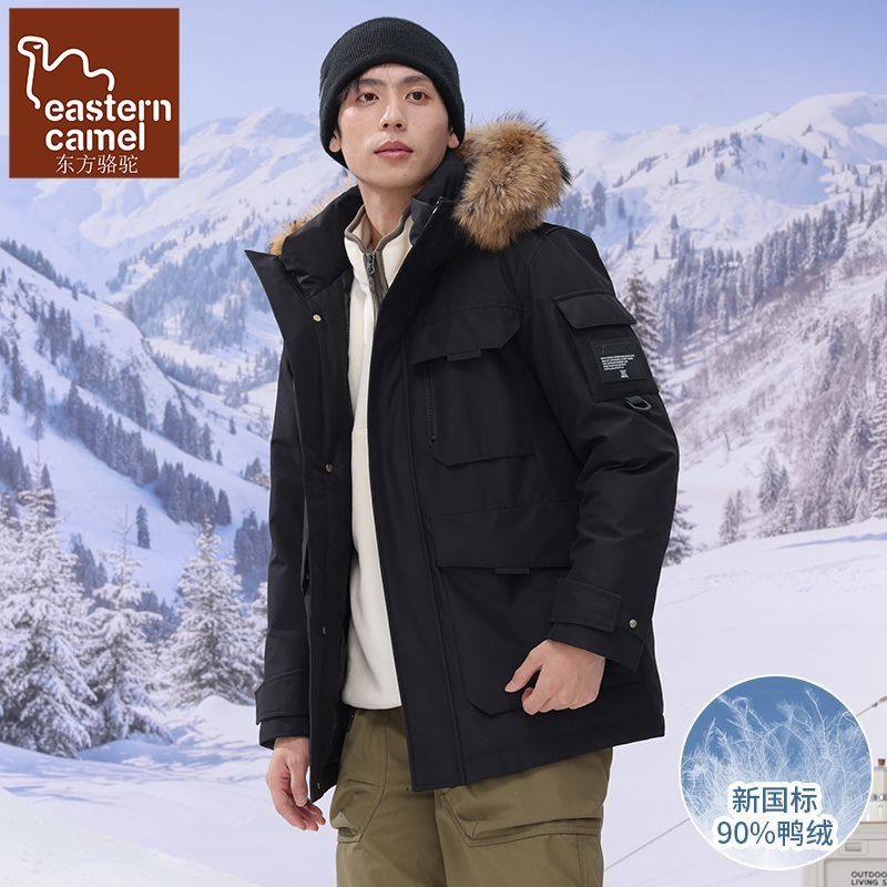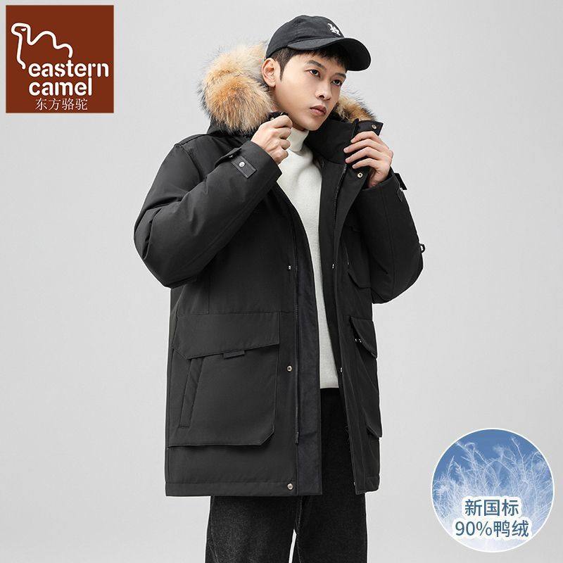 东方骆驼冬季羽绒服男派克风中长款可拆卸毛领加厚极寒保暖外套男