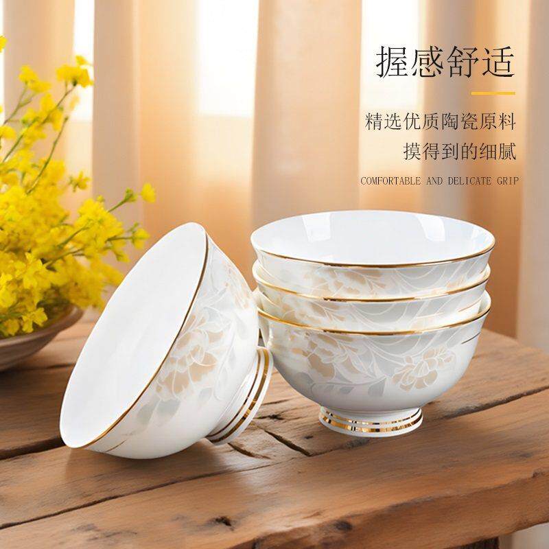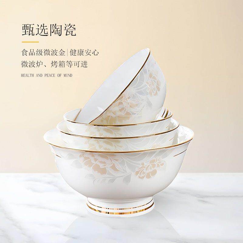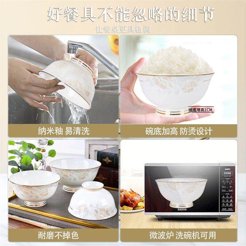 陶瓷碗家用吃饭碗景德镇碗盘餐具组合乔迁送礼高档瓷器套装可微波