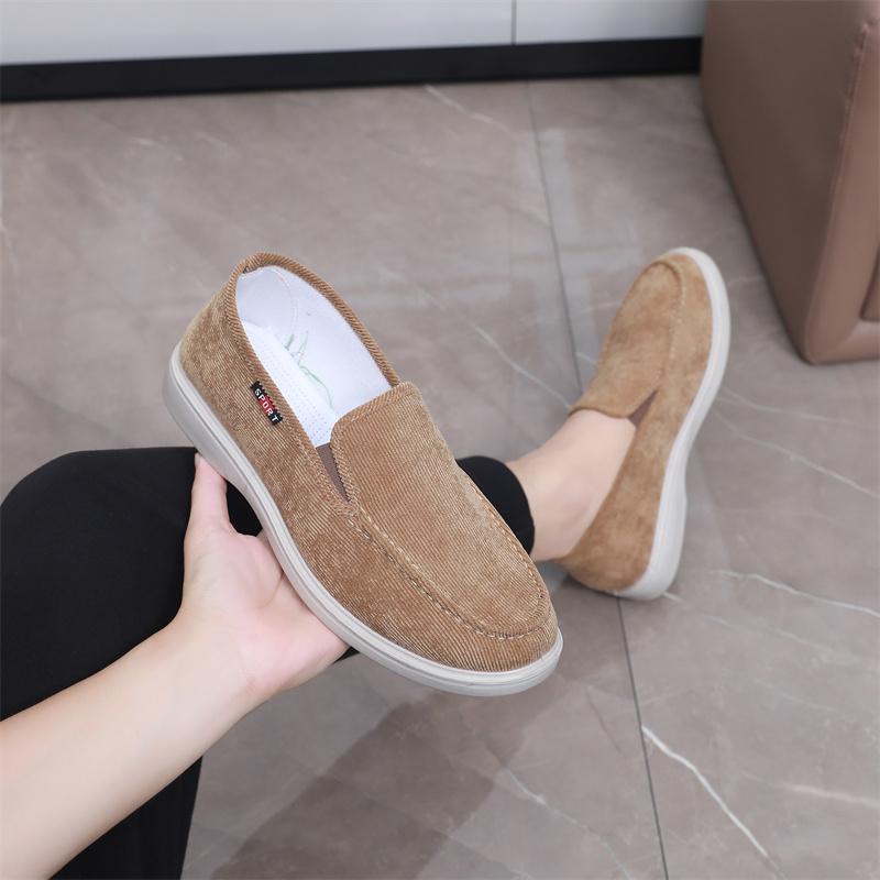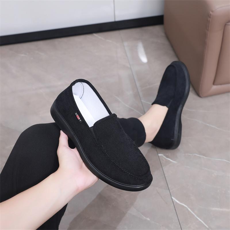 老北京布鞋男款软底新款男鞋一脚蹬懒人鞋条绒透气防滑耐磨休闲鞋