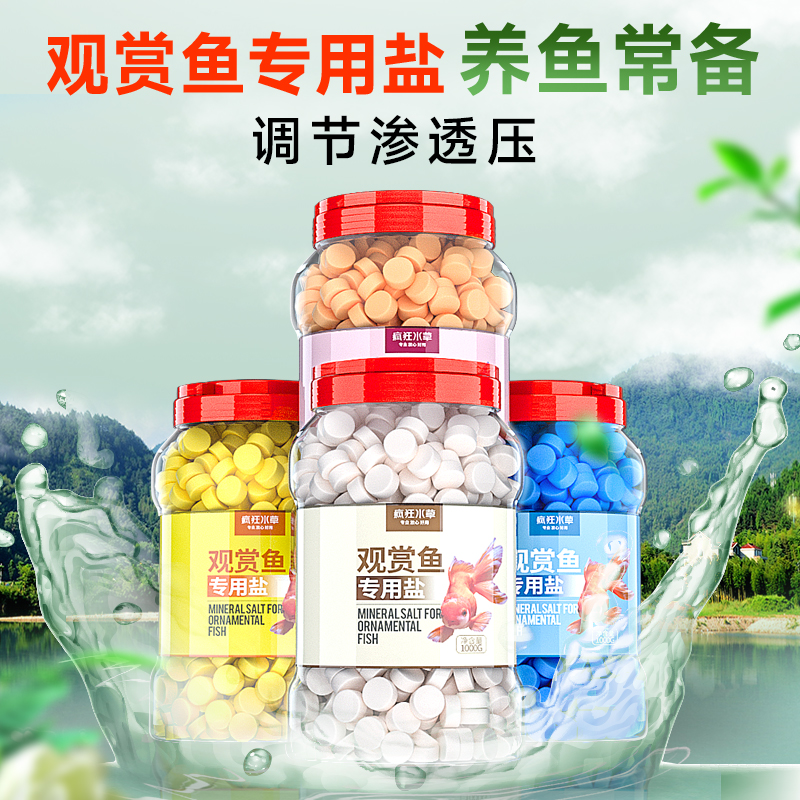 疯狂水草观赏鱼专用海盐鱼缸养鱼黄粉锦鲤专用消毒杀菌盐水族通用