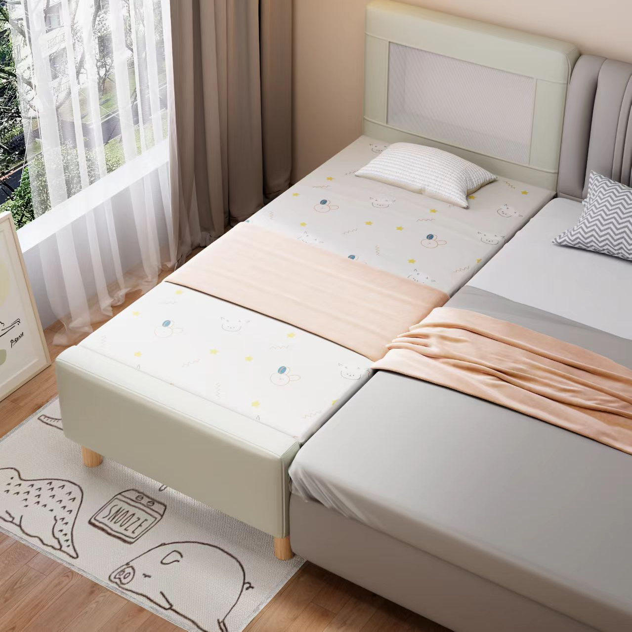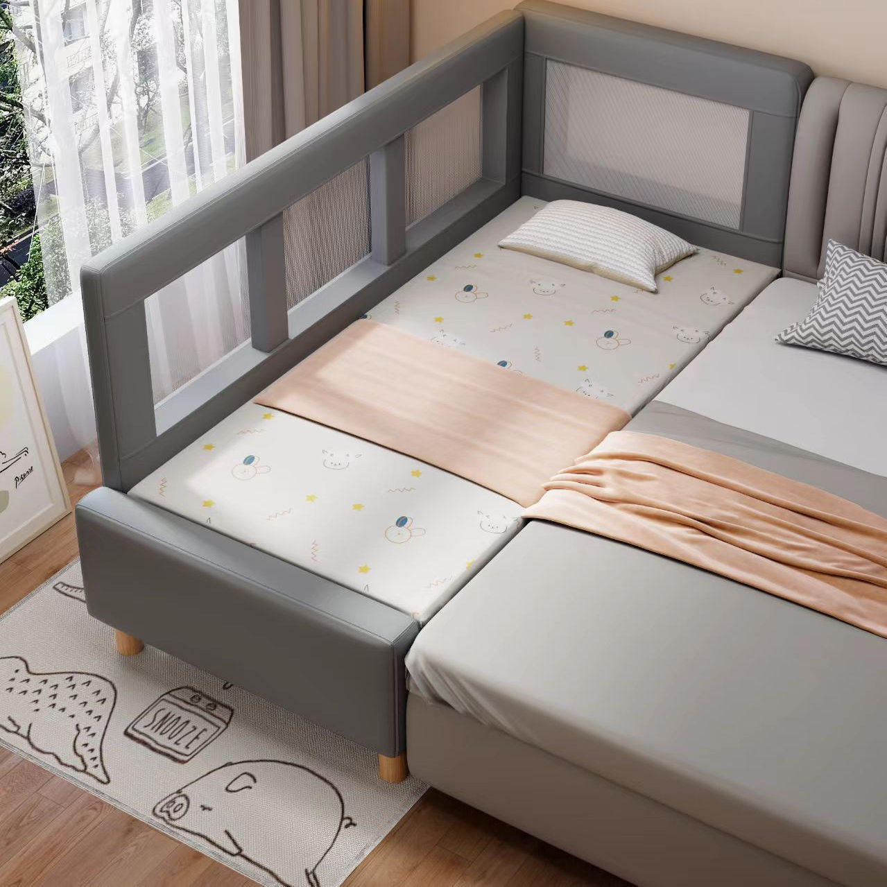 儿童拼接床软包婴儿床加高护栏男女孩儿童床加宽床大人可睡单人床