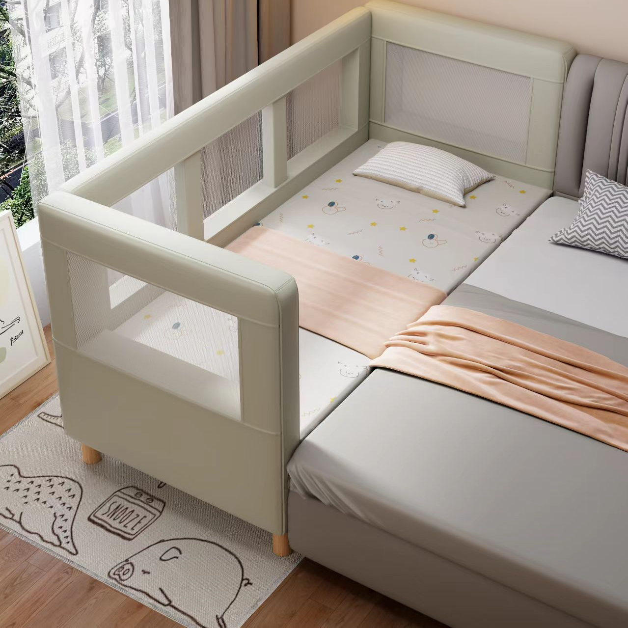 拼接床实木软包婴儿床加高护栏