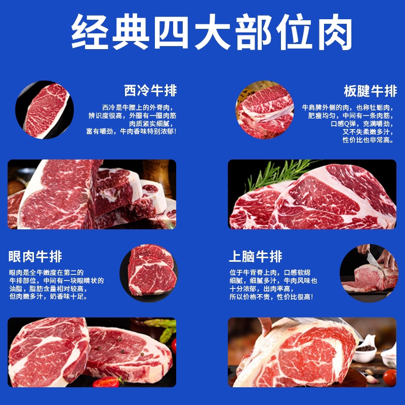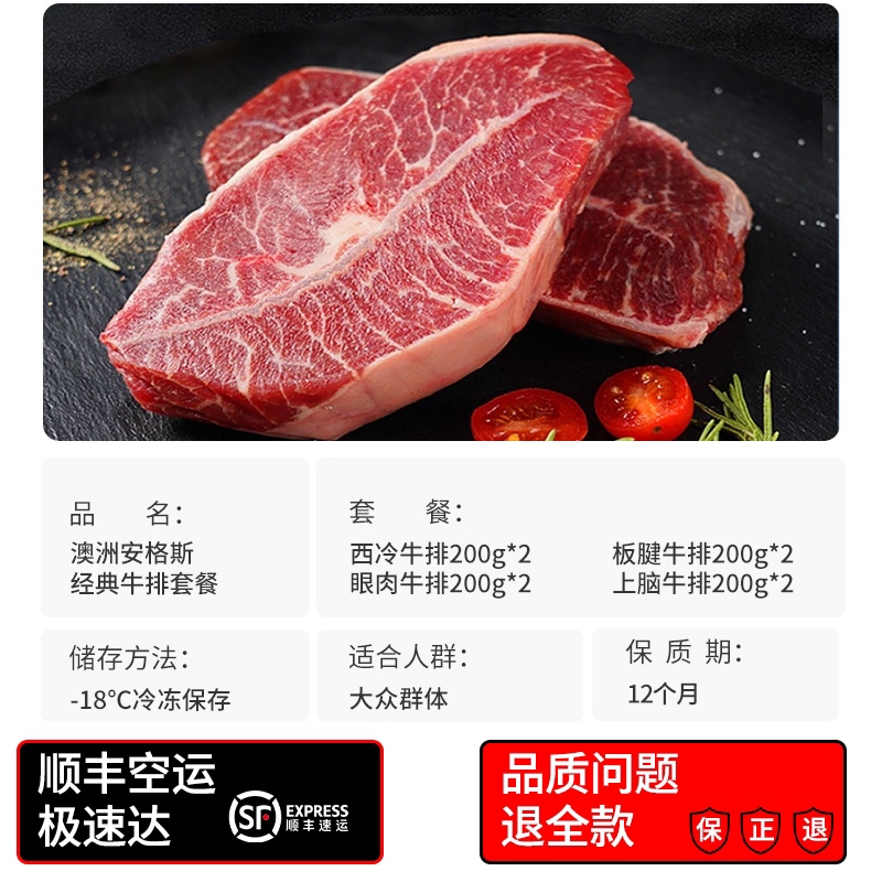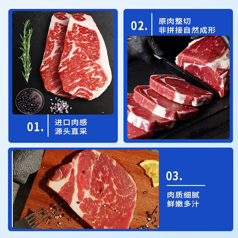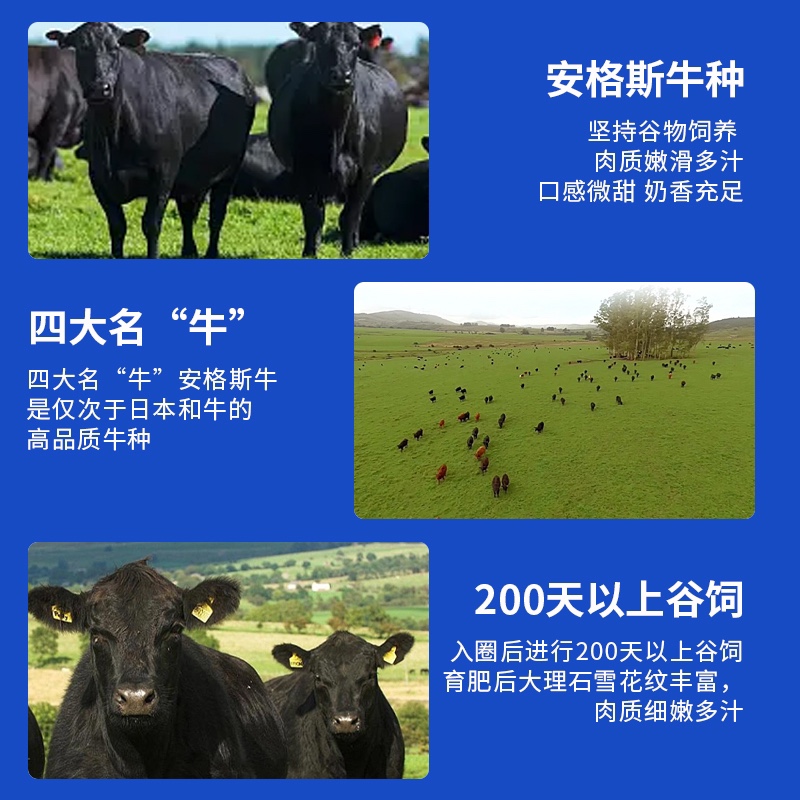 澳洲安格斯谷饲300天M7雪花牛排西冷眼肉板腱上脑套餐牛肉原切8片